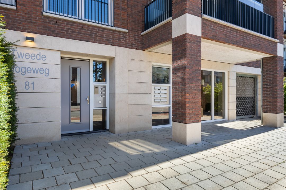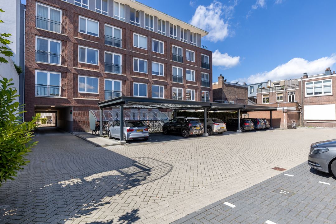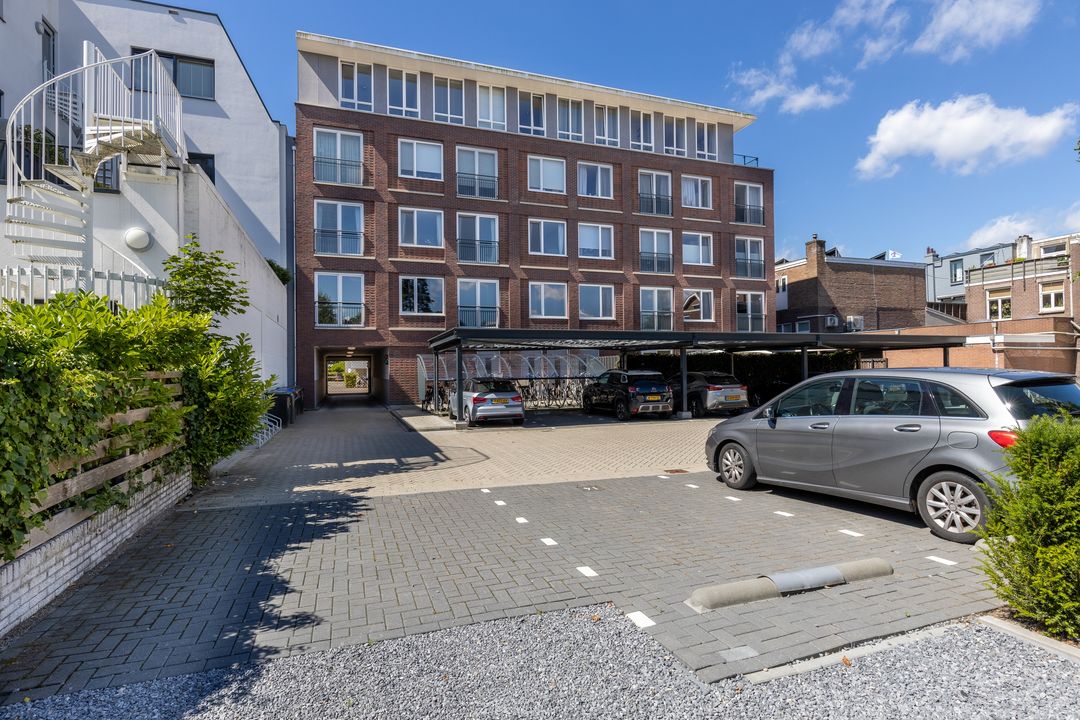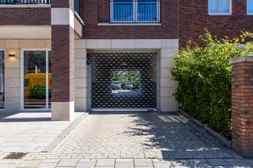 Het appartement heeft twee parkeerplaatsen op het afgesloten achter terrein en een overdekte fietsenstalling.