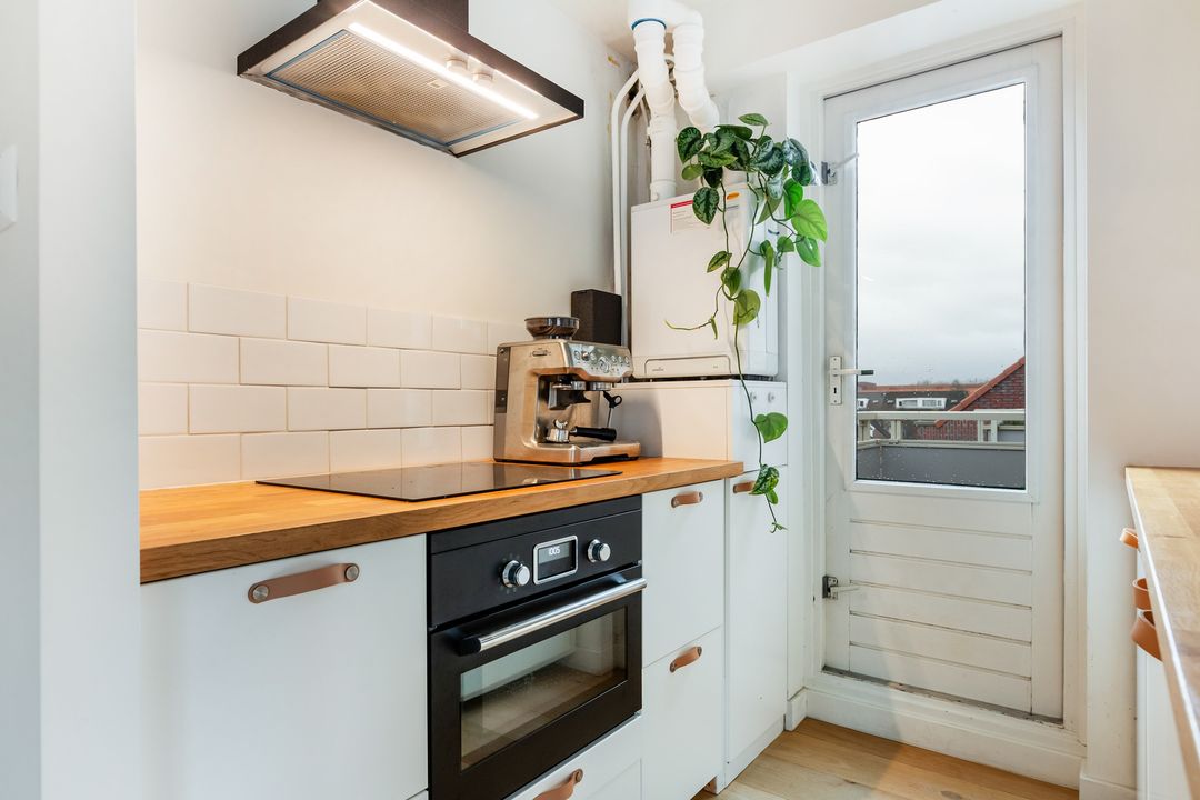 Via de keuken is er toegang tot het balkon met prachtig uitzicht over de binnenstad en de Dom.