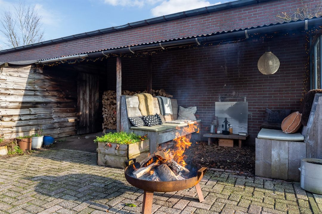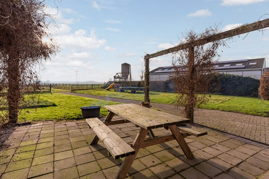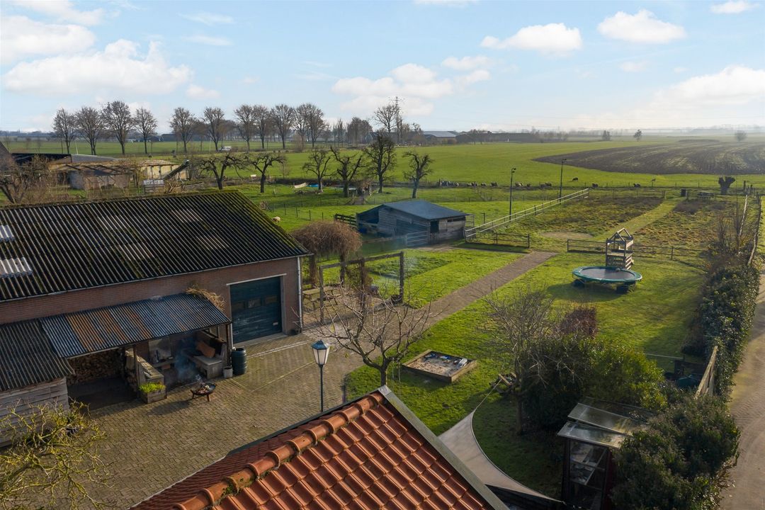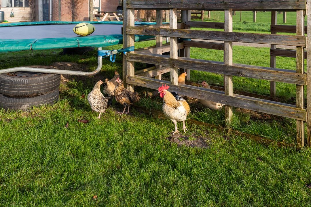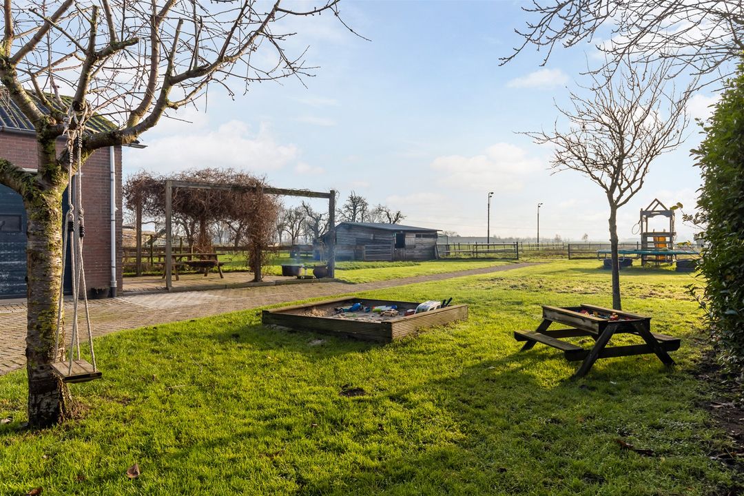 Het ruime diepe perceel van ca. 2200m2 is gunstig gelegen op het zuiden. Direct bij de woning is een terras en aansluitend een bijgebouw met twee paardenboxen. Achter op het perceel is dan ook een paardenrijbak. Diverse terrassen omringen het geheel. En op de heerlijk beschutte binnenplaats is altijd wel een plekje te vinden uit de wind, in de zon of in de schaduw. Het perceel heeft aangrenzende landerijen en deze zijn verbonden met het natuurgebied “Nieuw Wulven”.