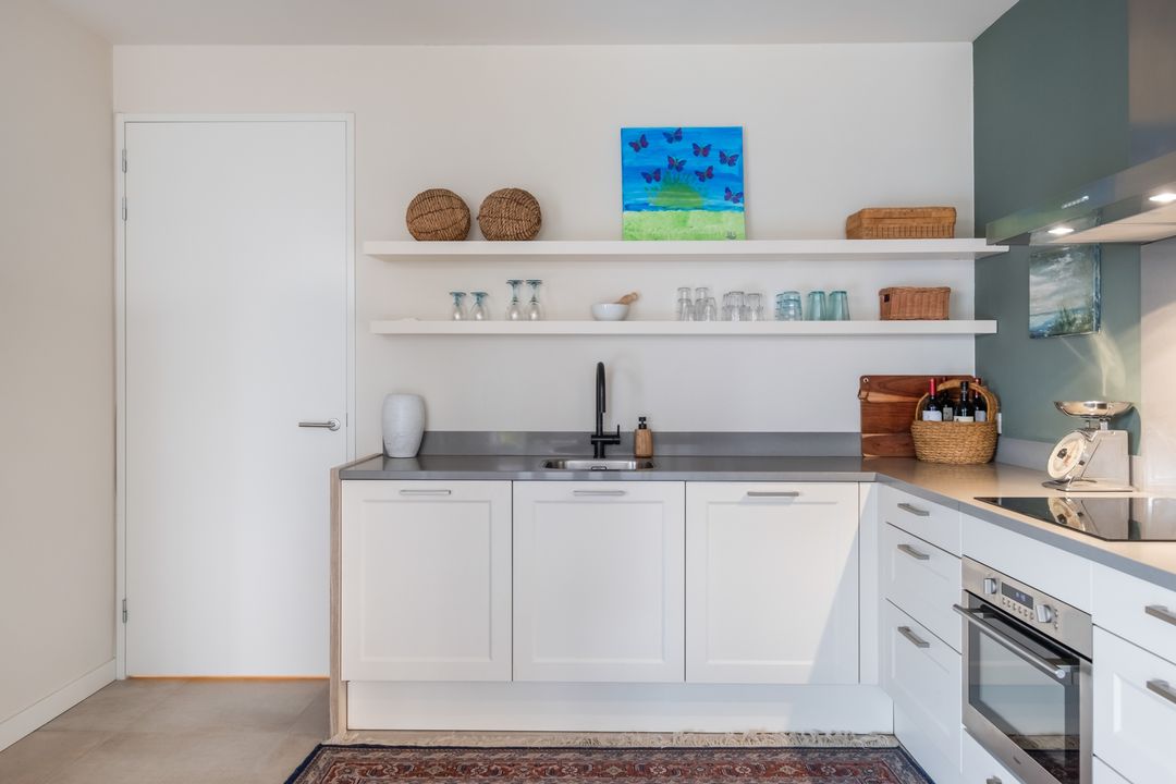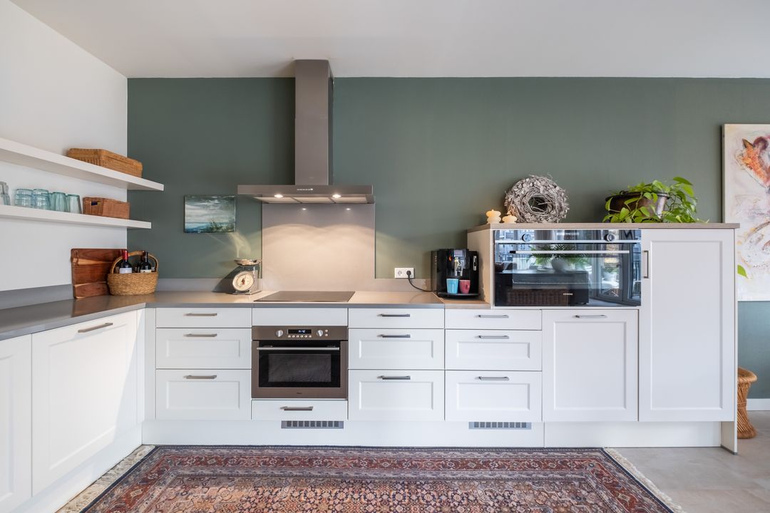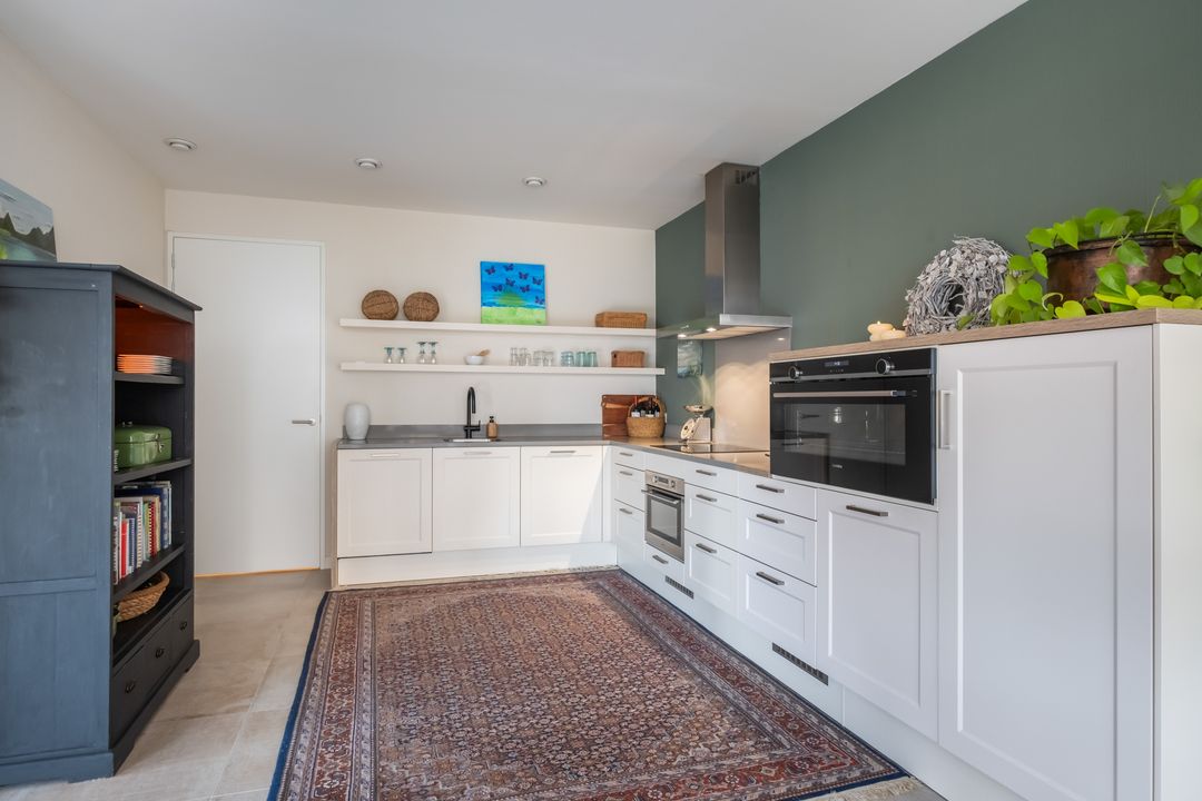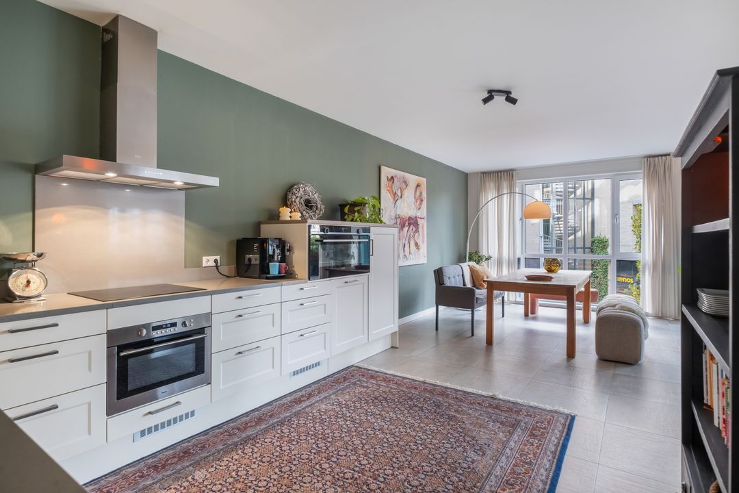 De open woon-/eetkeuken is uitgerust met diverse inbouwapparatuur, waaronder: