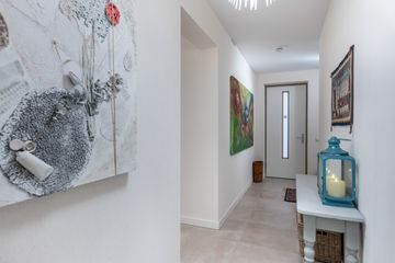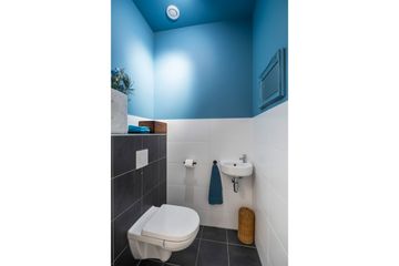 Via de ruime hal bereikt u een apart toilet, een technische berging en een bijkeuken met opstelplaats voor wasmachine en droger. De hal geeft toegang tot drie royale slaapkamers (ca. 14m2, 12m2 en 11 m2) .