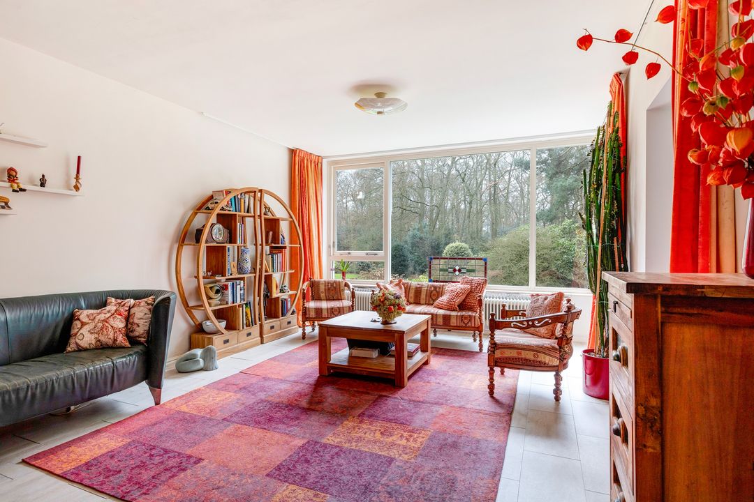 Bij binnenkomst in het appartement wordt uw blik direct getrokken naar de grote ramen die vrij uitzicht geven op de gemeenschappelijke tuin met daarachter een beukenbos met slingerende lanen en sprengen in het beheer van het Utrechts Landschap.
