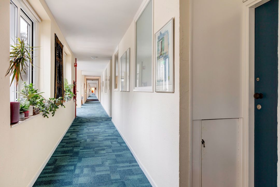 Het appartement ligt aan het einde van de lange gang, hierdoor dus vlakbij de zijdeur en de buitenlift zodat u, indien gewenst, de vrije ruimte kunt zoeken of meer in de gemeenschap kunt deelnemen als u via de centrale hal naar binnen of buiten loopt.