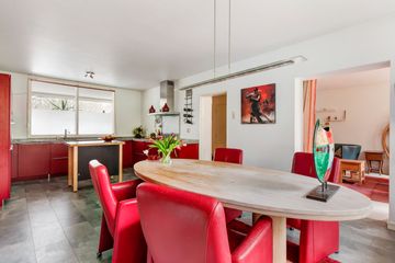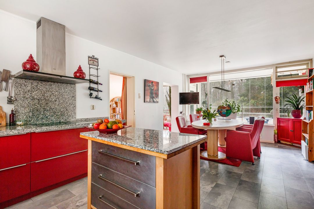 De woonkeuken is zeer ruim en in een u-vorm opgesteld, v.v. een granieten aanrechtblad van zeven meter en een los middenblok, inductiekookplaat, plintboiler, oven, veel opbergruimte d.m.v. o.a. een apothekerskast. U treft een ruim zit- en eetgedeelte en er zijn aansluitingen voor televisie naar zowel de woonkeuken als de zitkamer en draadloos internet.