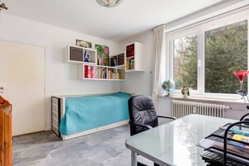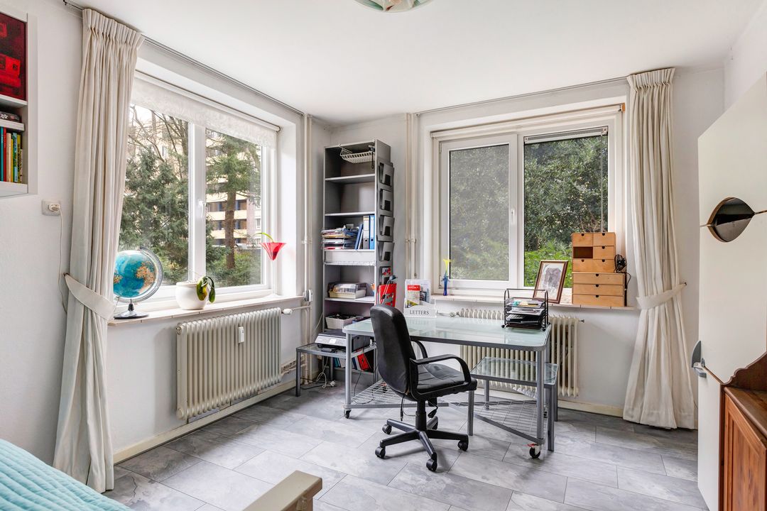 De logeer- cq studeerkamer heeft twee zelfde ramen en kozijnen als de slaapkamer.