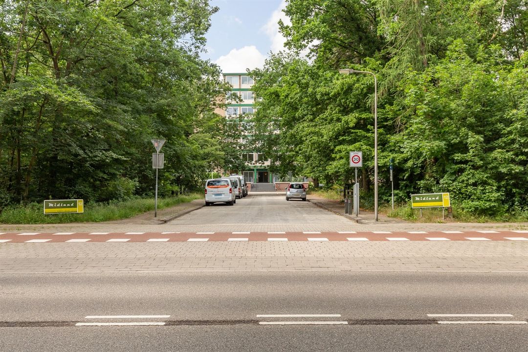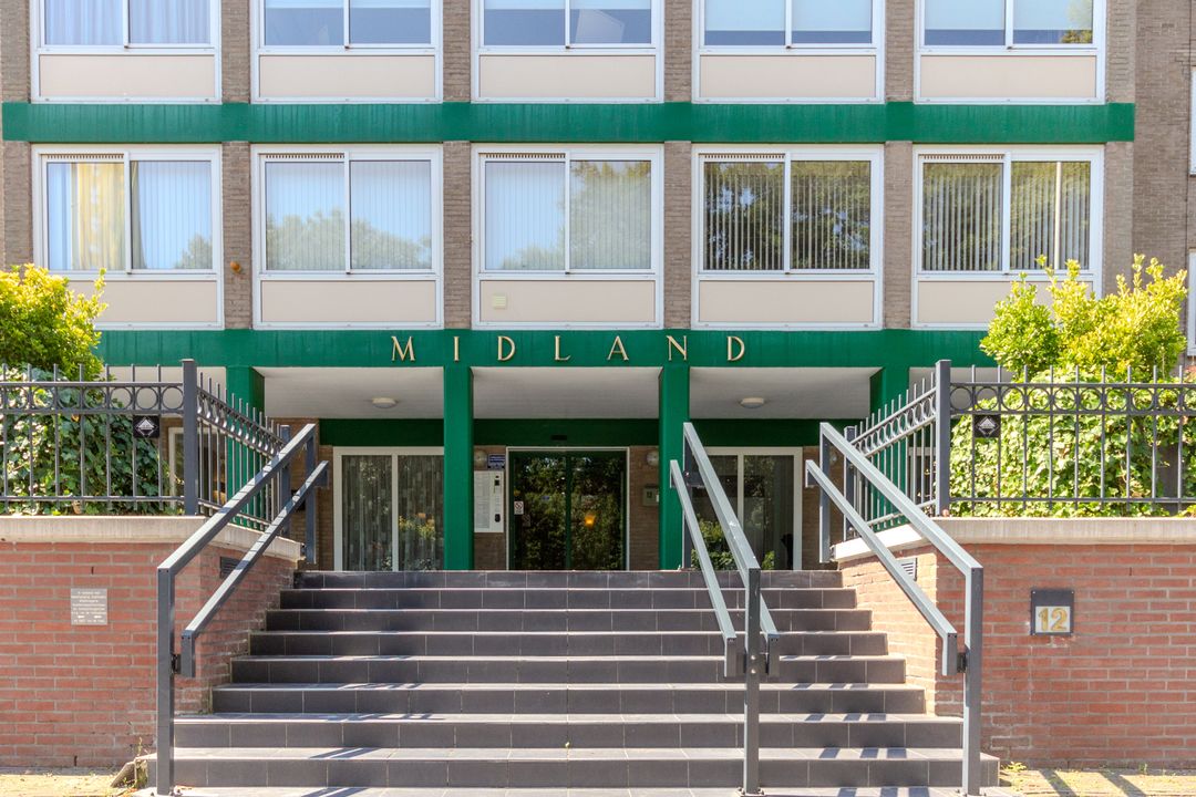 Het appartementencomplex Midland aan de Arnhemse Bovenweg 12 heeft als motto “bijzonder wonen in ’t groen” en dat heeft alles te maken met het uitzicht op de parkachtige omgeving en de bijzondere ligging grenzend, aan het landgoed “Molenbosch”.