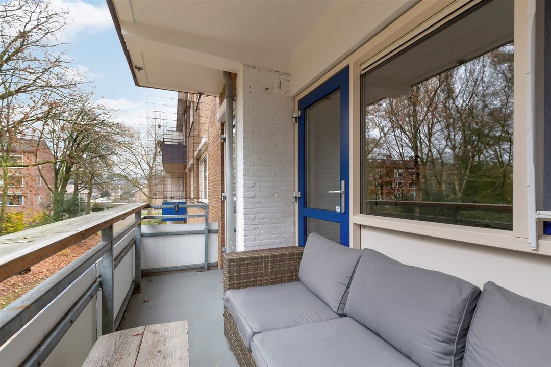 Vanuit de woonkamer en grote slaapkamer is het balkon, gelegen op het Zuid-Westen, bereikbaar.