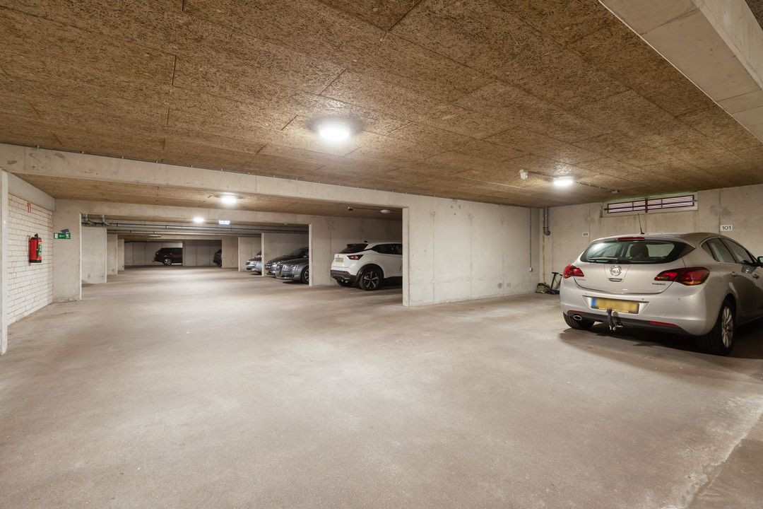 Er is een privéparkeerplaats aanwezig in de onderbouw van het appartementencomplex. Daarnaast is er voor bezoekers een parkeerterrein voor het appartementencomplex aanwezig.