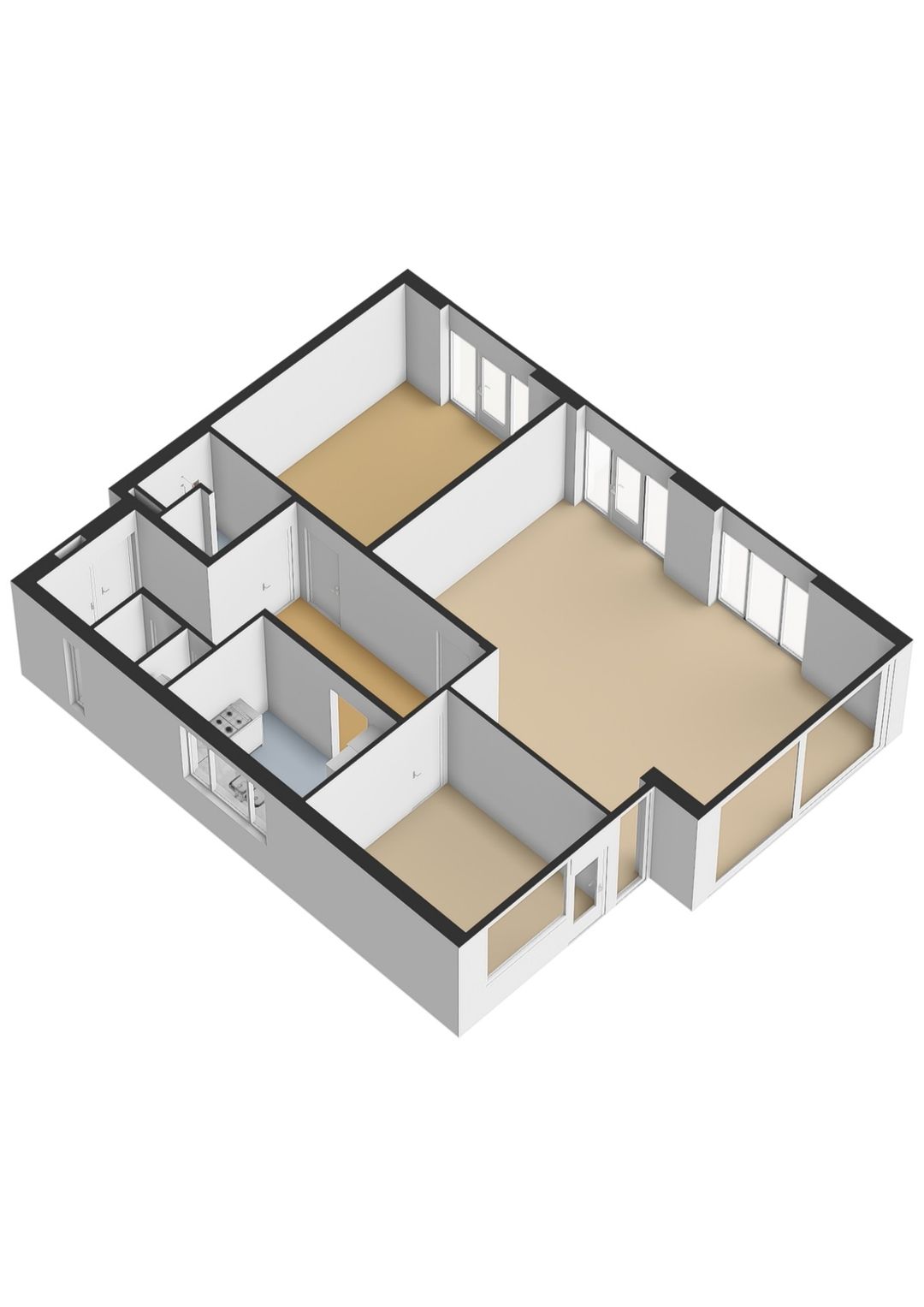 Bij de bouw is er een tussenwand in de woonkamer geplaatst, waardoor een extra ruimte is ontstaan die momenteel dienstdoet als eetkamer. Ook deze ruimte heeft een deur naar het terras. De tussenwand kan eenvoudig worden verwijderd om een grotere leefruimte te creëren.