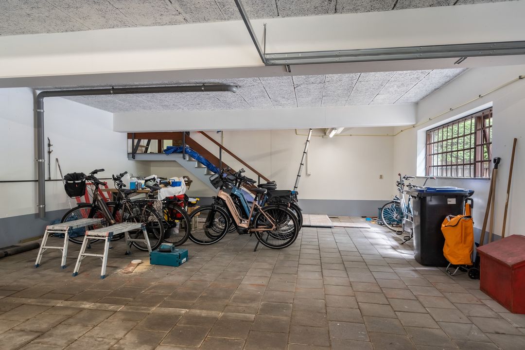 In de onderbouw is een garage waarin u een plek toegewezen krijgt door het bestuur van de V.v.E. met ruimte voor fietsenstalling met een flauwe hellingbaan en elektrische garagedeur wat voor eenieder makkelijk begaanbaar is. Als extra is er ook nog een af te sluiten privé berging, met een 3 meter hoog plafond en 9m² oppervlakte.