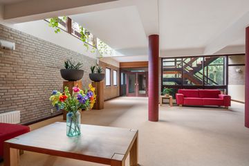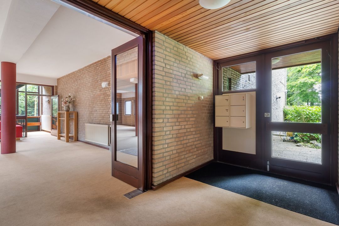 U komt binnen in de entree, door de uitgebroken muur naar de woonkamer beleeft u gelijk een royaal gevoel. De entree en woonkamer zijn voorzien van een massief eikenhouten vloer. Door het gebruik van veel glas ervaart u een ruimtelijk en vergezicht idee. Vanuit de woonkamer heeft u doorkijk naar de royale tuin met zijn zitjes en het bos, groot genoeg voor uw dagelijkse beweging. De tuin is makkelijk begaanbaar vanuit de woonkamer door een grote schuifpui en loopdeuren aan de zijkanten naar het terras. Door een afscheiding van de muur wordt er een open eetgedeelte gecreëerd. Verder zijn er twee ruime slaapkamers aanwezig met een deur naar het terras/tuin. De inpandige badkamer is voorzien van een dubbele wastafel met bad, aparte inloopdouche (100cm x 90cm) en grote nis voor de wasmachine en de droger. In de badkamer hangt een mooie designradiator. De keuken is voorzien van een hoogglans zwarte natuurstenen aanrecht met vaatwasser, inbouwapparatuur, koelkast en vriezer. De inbouwapparatuur is voorzien van een hete lucht stoomoven met inductiekookplaat en grote koel-vriescombinatie. Verder is er in het complex de mogelijkheid tegen een zeer lage prijs voor het huren van (in totaal drie) logeerkamers met eigen douche en toilet.