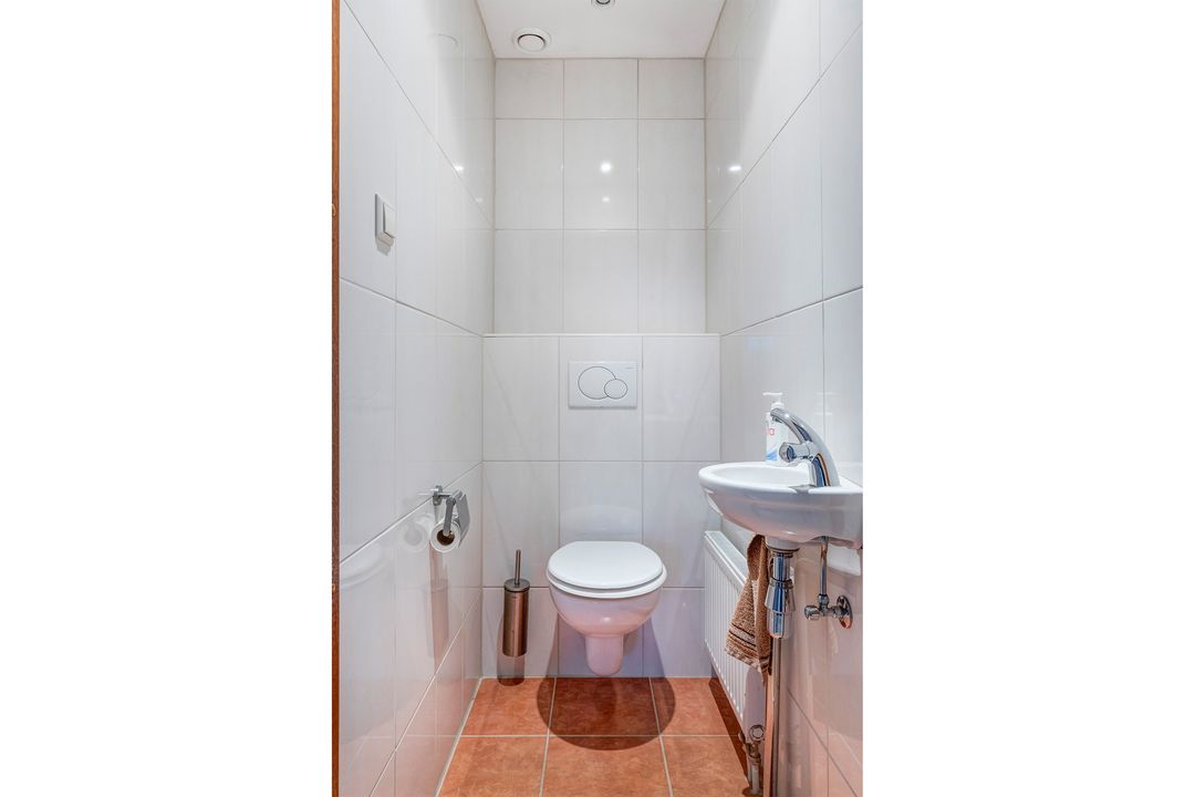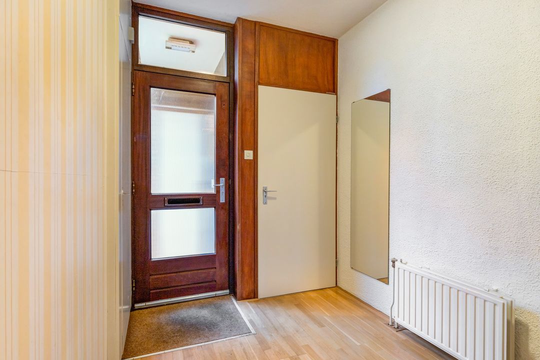 Entree, toilet, meterkast, garderobe en toegang tot de hal met een ruim toilet en de trapopgang naar de eerste etage. Vanuit de hal zijn de bijkeuken en de woonkamer bereikbaar. De woonkamer heeft aan de achterzijde het zitgedeelte.