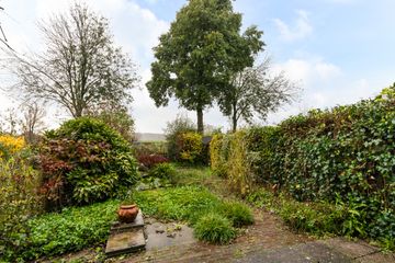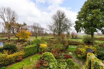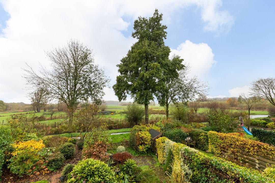 Zonnige achtertuin ligt op het zuidwesten en grenst aan de weilanden.