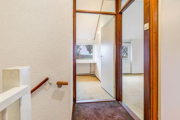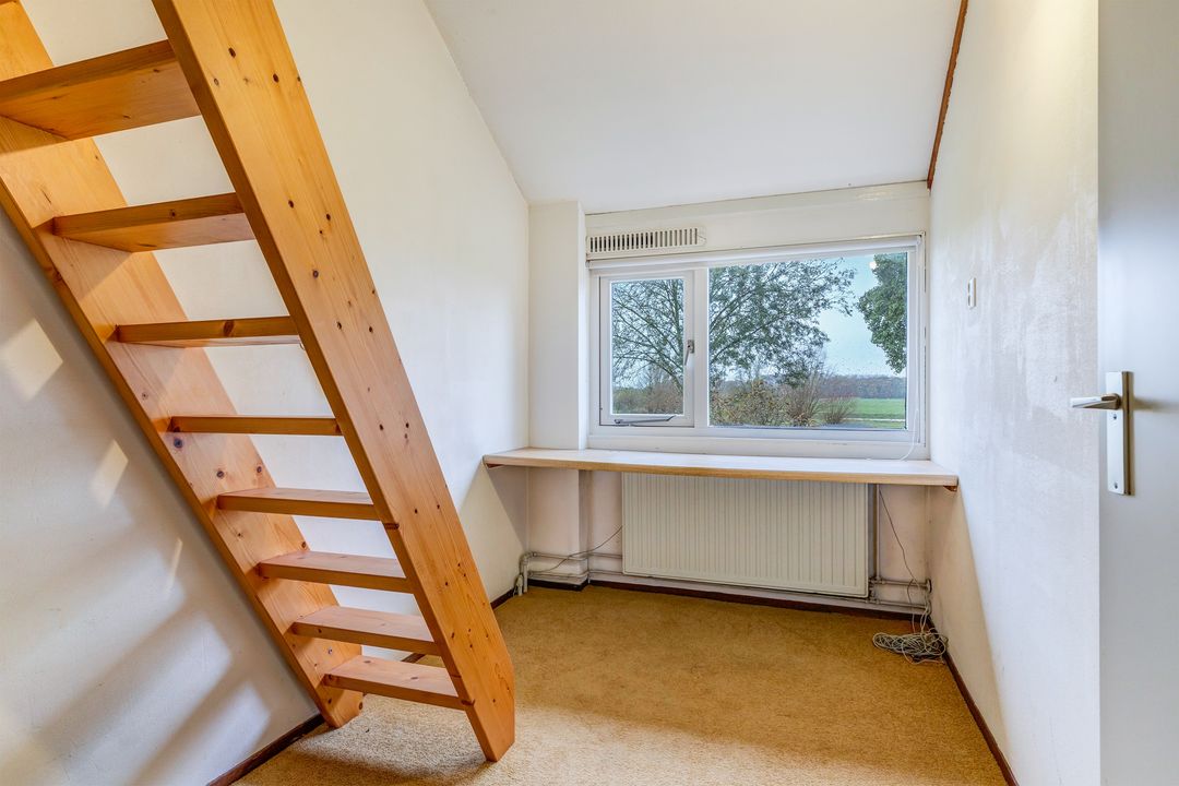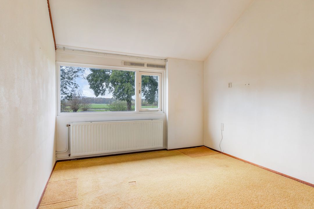 Overloop met toilet, toegang tot drie slaapkamers de badkamer. De hele etage is voorzien van vloerbedekking, de muren zijn behangen. Aan de achterzijde liggen twee slaapkamers, beide met fraai uitzicht over de weilanden. De kamers zijn licht door de raampartijen, de grootste slaapkamer is aan de voorzijde gelegen. De badkamer, de doucheruimte en het toilet zijn voorzien van mechanische ventilatie.