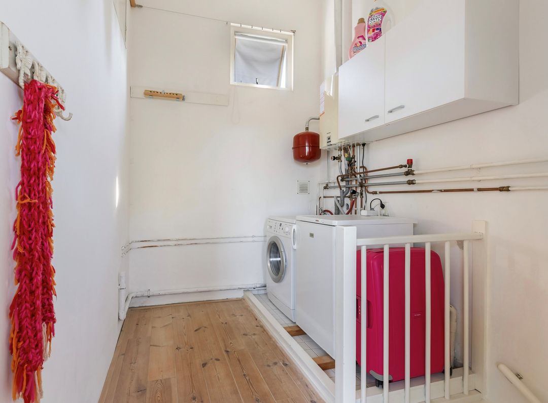 Op de tweede etage is een hoge overloop met ruimte voor de wasmachine, een droger of een extra vriezer.