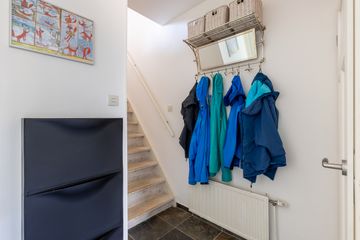 Door de voordeur kom je in een ruime hal met toilet, garderobe, trapopgang naar boven en een grote inbouwkast waarin zich de nieuwe en uitgebreide meterkast en overige installaties bevinden.