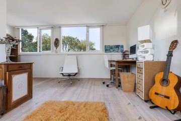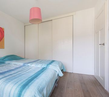 Tevens is er aan de voorzijde een slaapkamer van goed formaat met zeer ruime inbouwkast en prachtig uitzicht. Vanuit je bed zie je alleen maar prachtige bomen wuiven in de wind en voelt het alsof je in een park woont!
