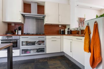 Er is veel opbergruimte, een hoge apothekerskast en diverse handige diepe lades.