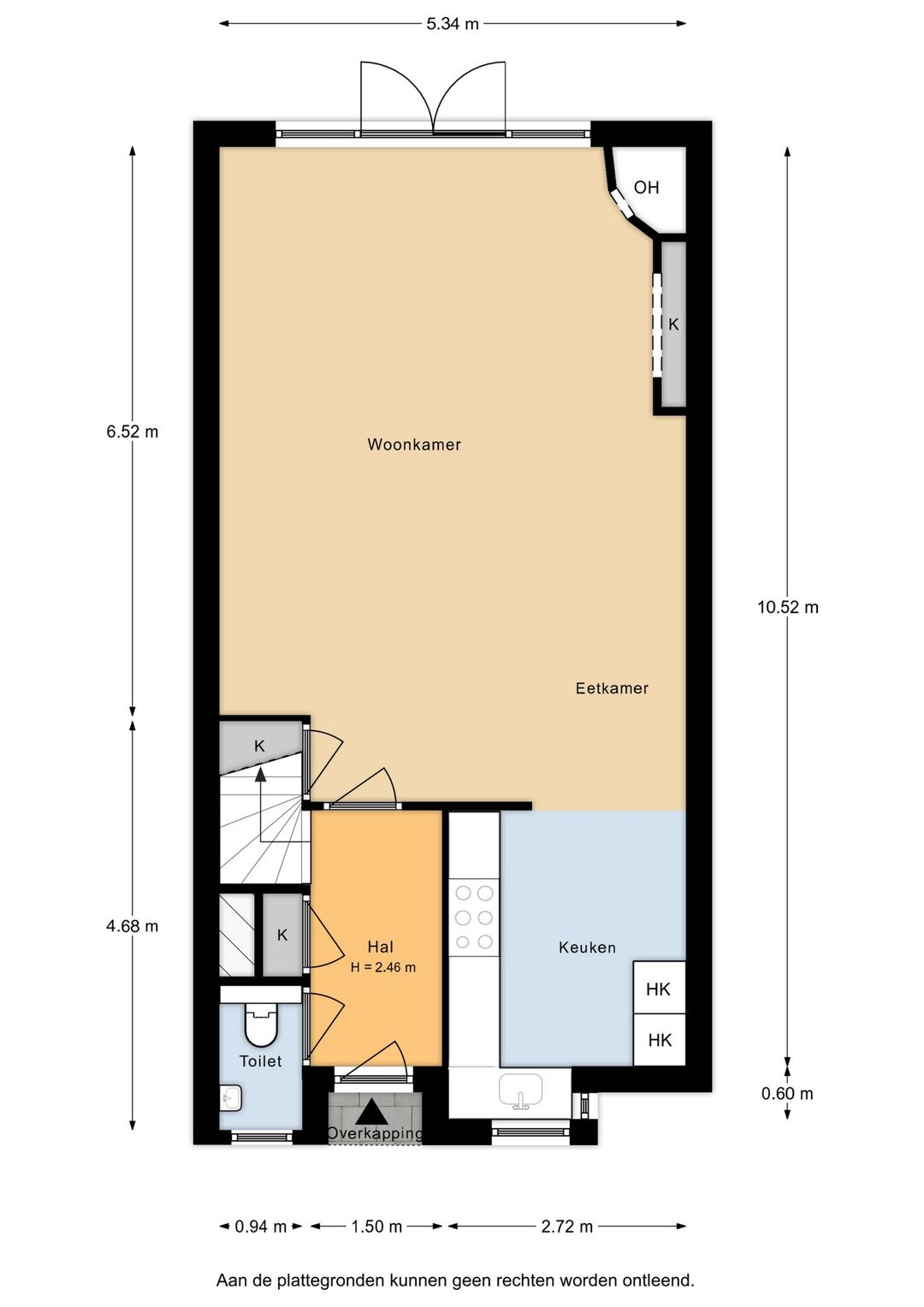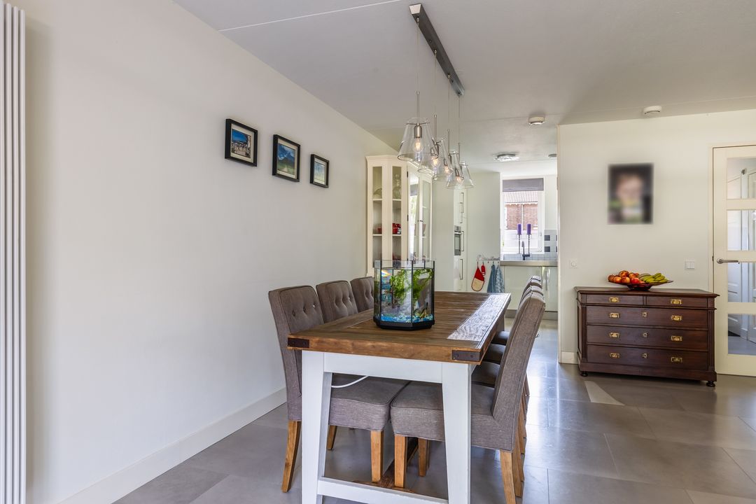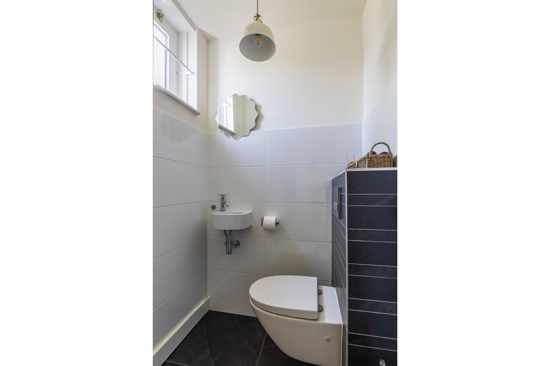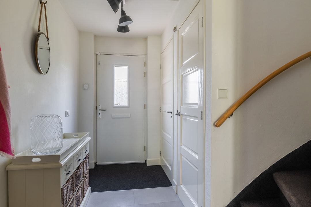 Entree, hal met modern toilet. Ruime en uitgebouwde woonkamer met elektrische haard en openslaande deuren naar de zonnige achtertuin. Aan de voorzijde bevindt zich de moderne en complete keuken, welke is voorzien van inbouwapparatuur en een plintboiler.