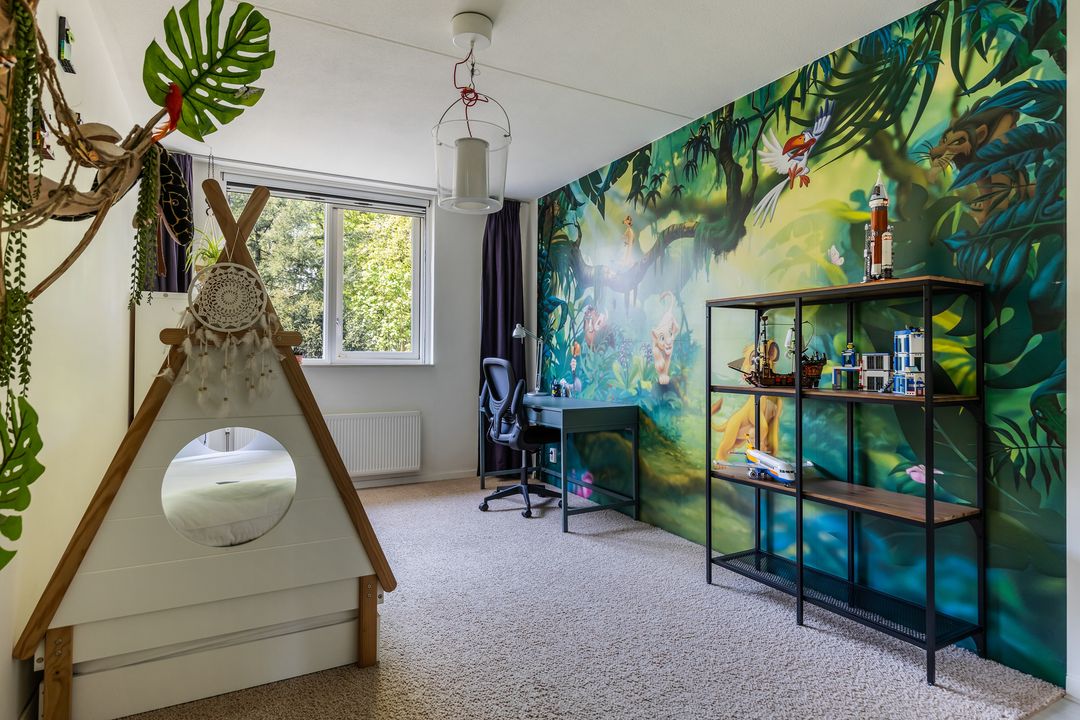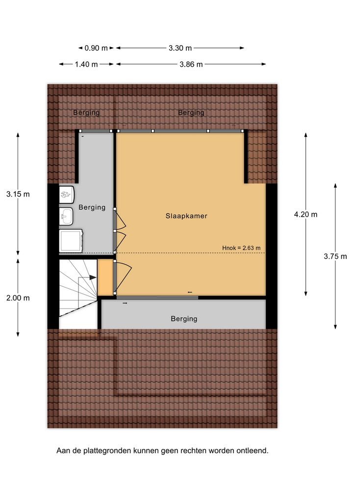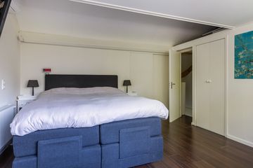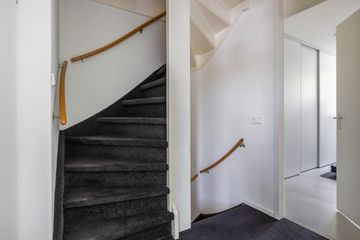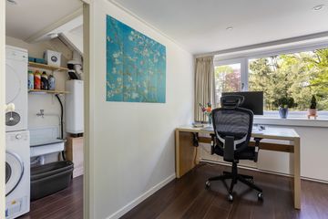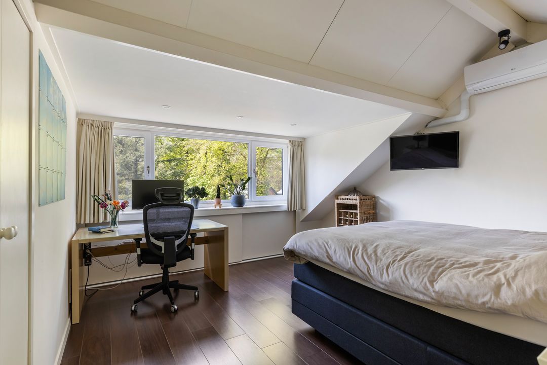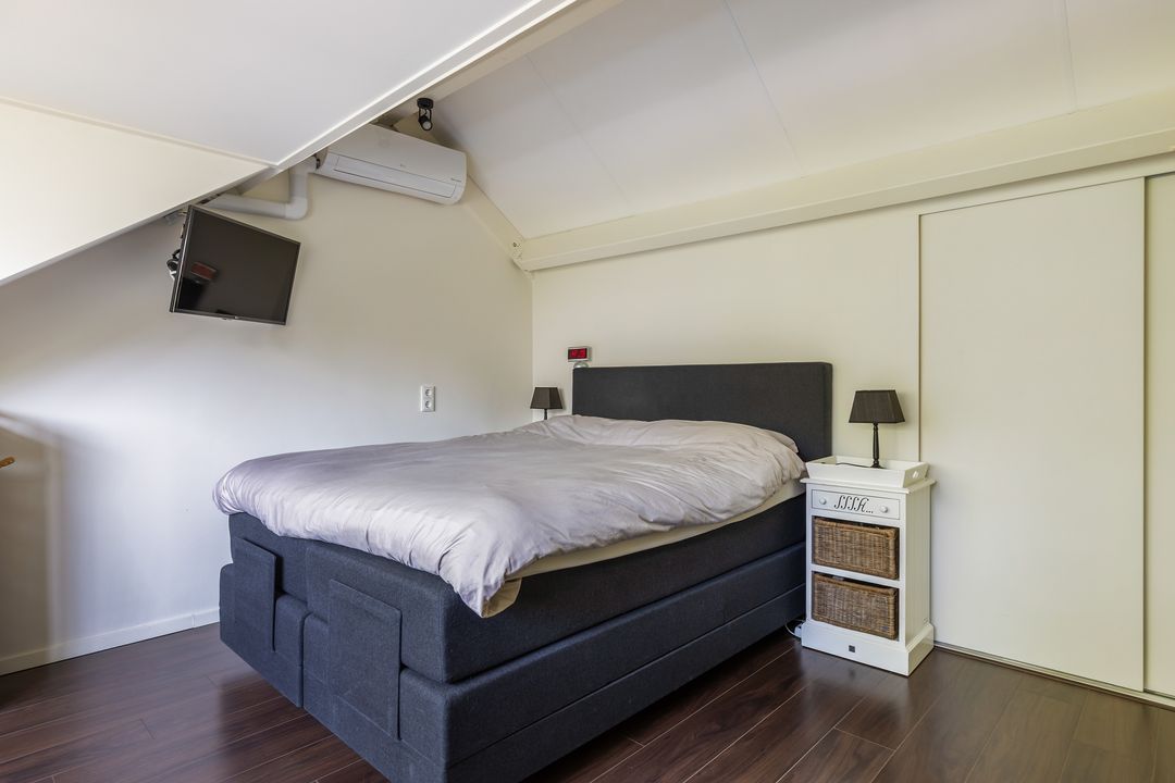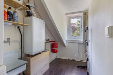 Vaste trap naar voorzolder met opstelling c.v.-ketel en aansluitingen voor wasmachine en droger. Ruime vierde slaapkamer met groot dakkapel uit 2017 en v.v. airco, grote berging achter het schuine gedeelte aan de voorzijde.