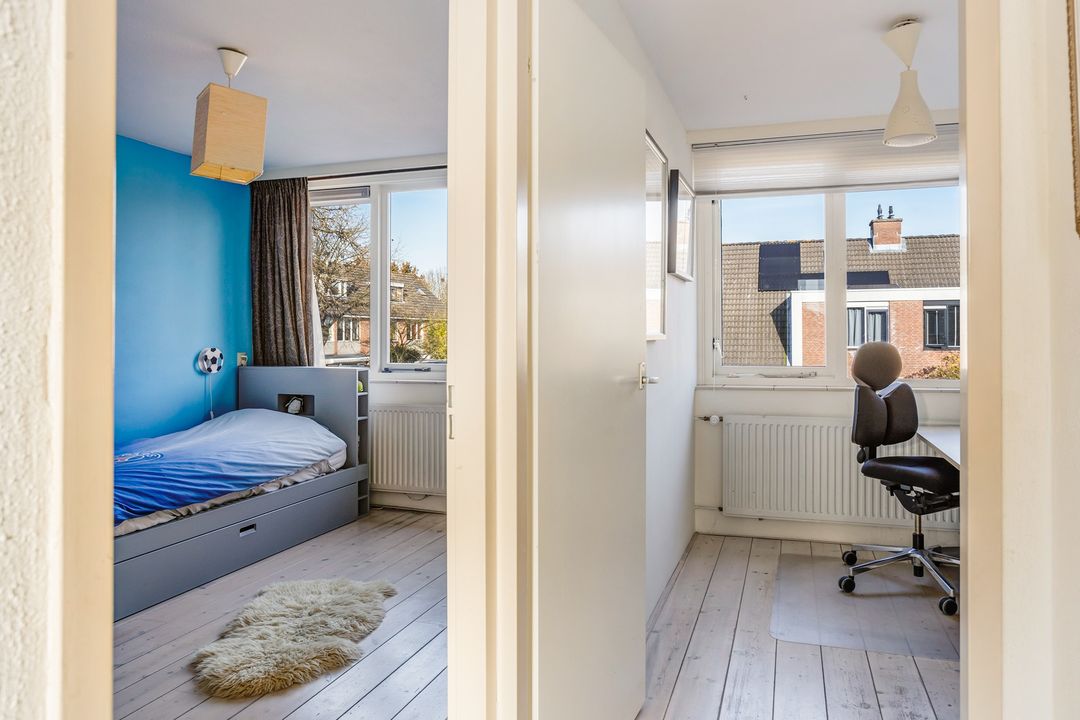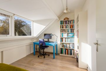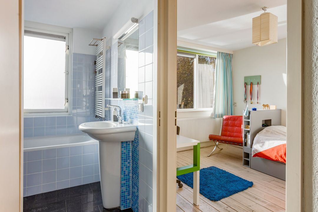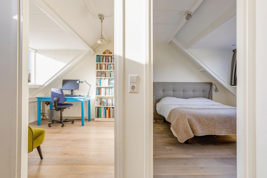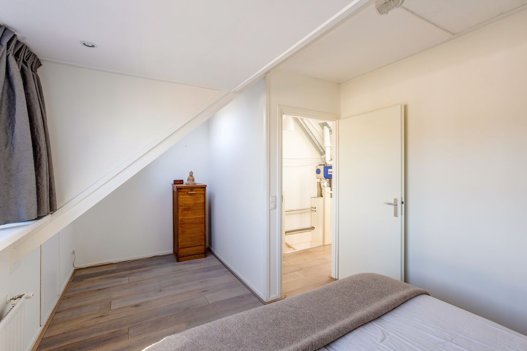 Overloop, eerste slaapkamer aan de voorzijde met inbouwkastenwand, tweede kamer aan de voorzijde van het woonhuis voorzien van inbouwkast, derde slaapkamer aan de achterzijde van het woonhuis met inbouwkast. Badkamer aan de achterzijde met designradiator, ligbad, wastafelmeubel en toilet. De badkamer is gerenoveerd in 2021.