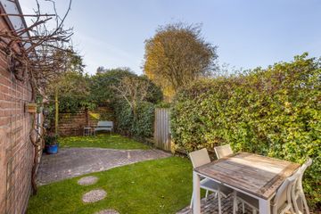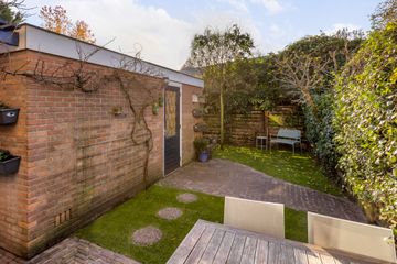 Nette privacy gerichte achtertuin met een stenenschuur, een gezellig gazon en tevens bereikbaar via een zij poort.