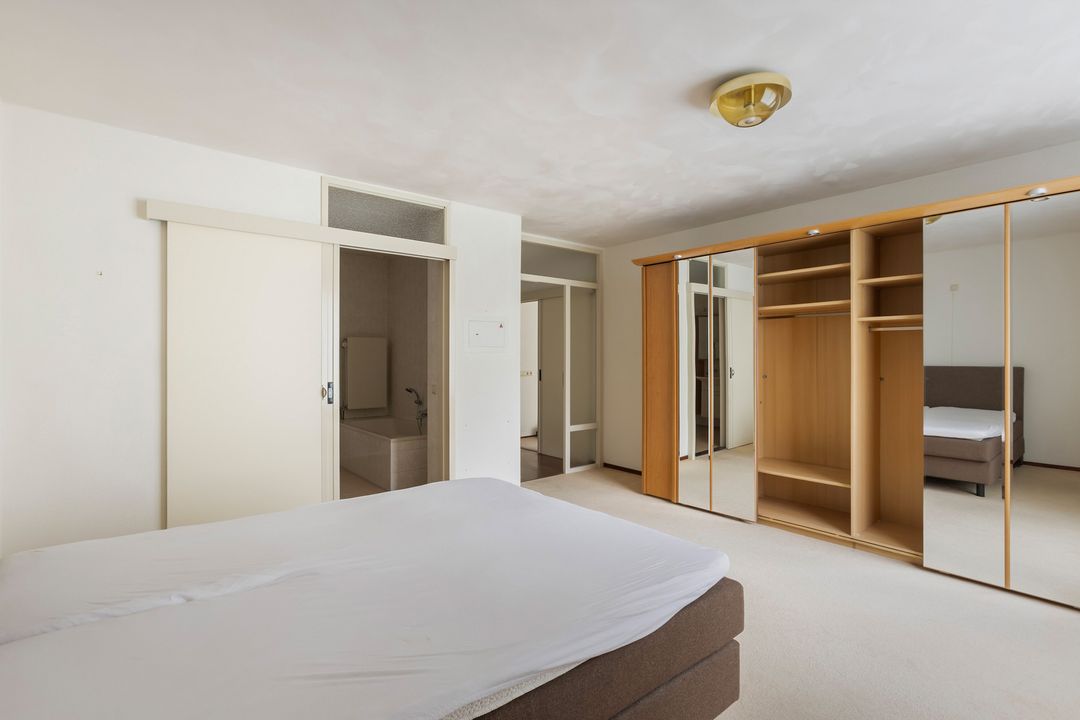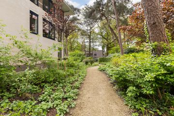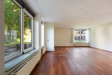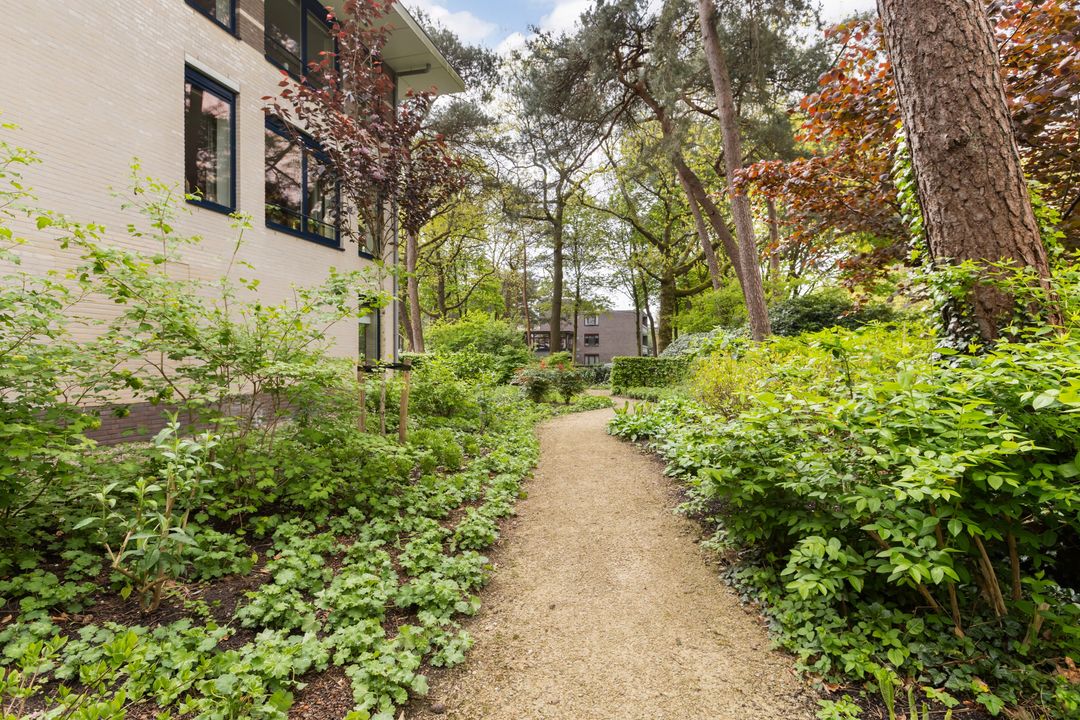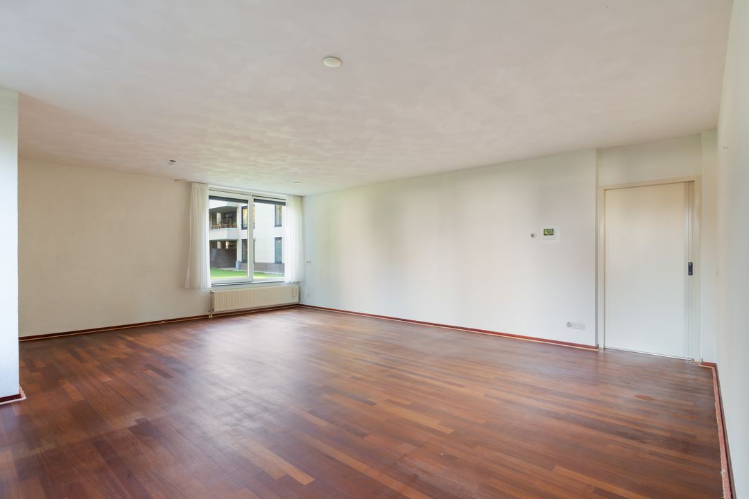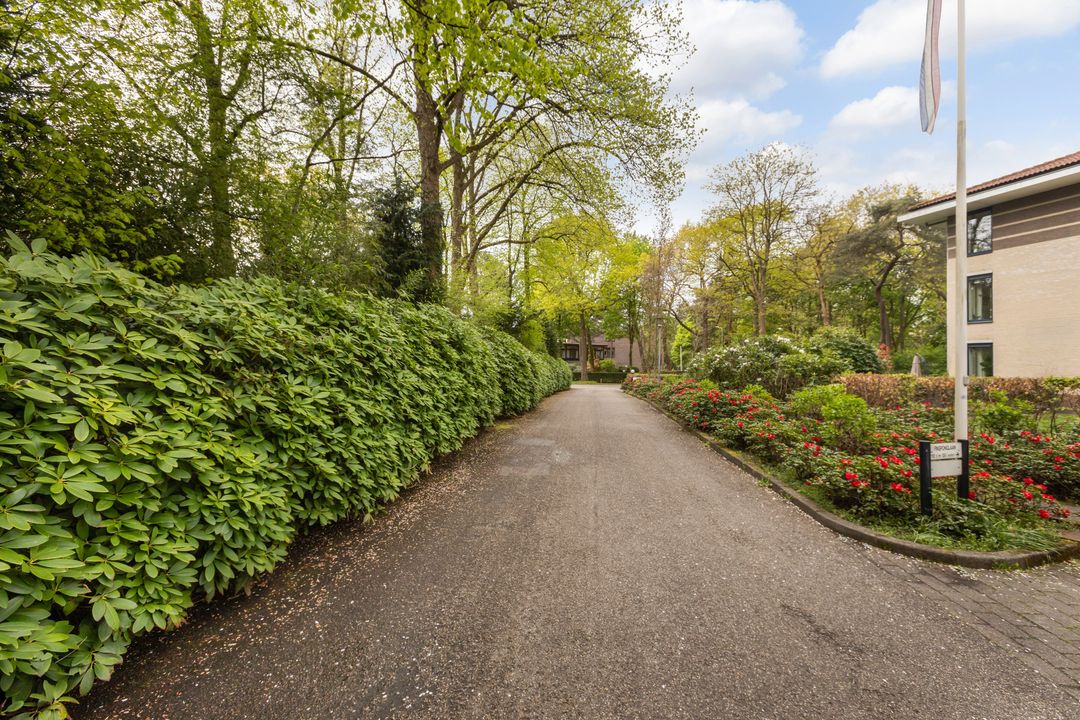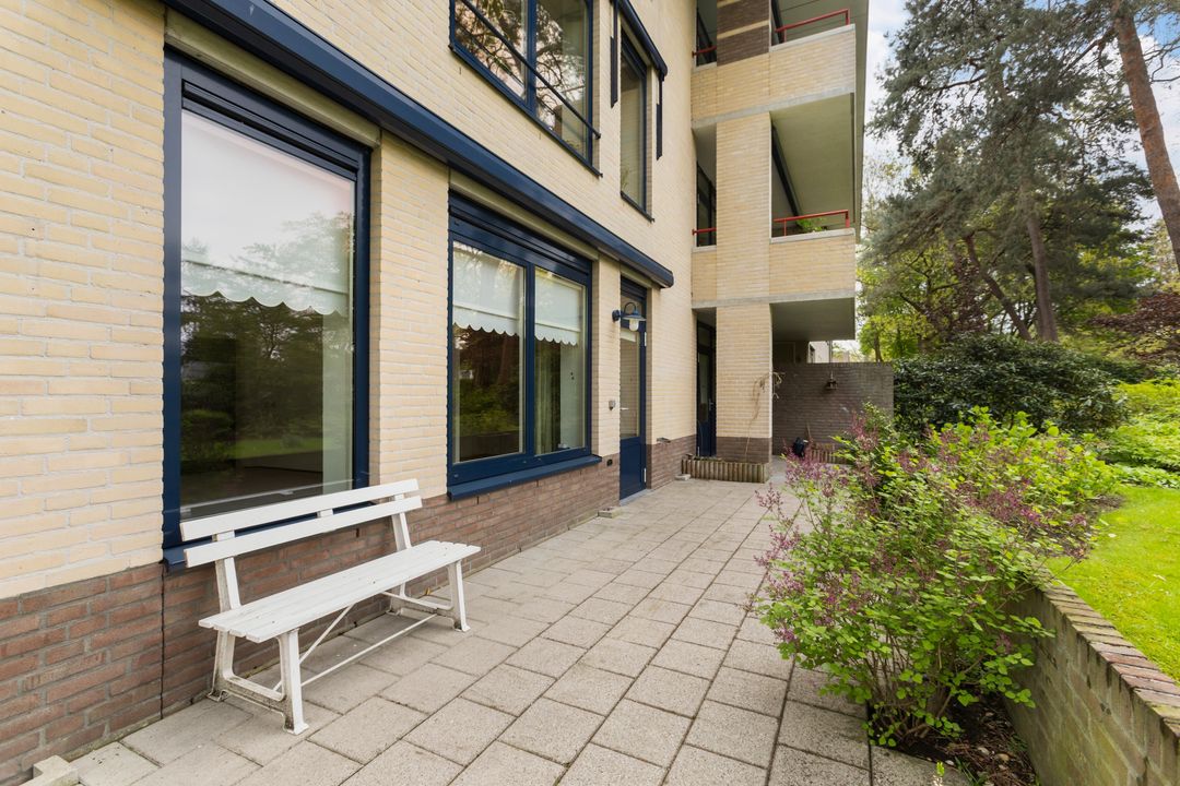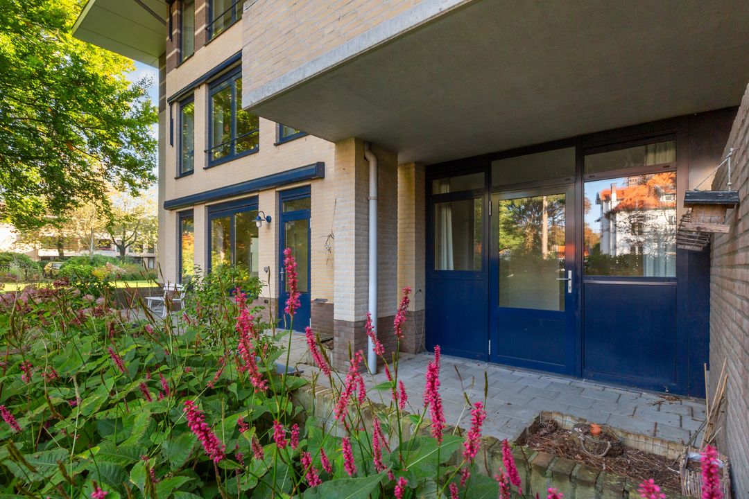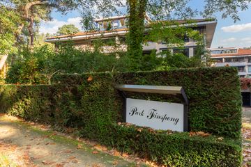 Entree appartement. Ruime hal waarvandaan alle vertrekken te bereiken zijn. Dit zijn de meterkast, het ruime toilet met fontein, de bijkeuken met aansluitingen was- en droogmachine, c.v. gasketel en bergplanken en de woonkamer. De ruime woonkamer (46 m2) v.v. een prachtige parketvloer, heeft veel ramen waarvandaan uitzicht over het park is. Met name het grote raam aan de oostkant geeft uitzicht over de magnifieke tuin. Vanuit de woonkamer is de halfopen keuken te bereiken. De keuken is voorzien van inbouwapparatuur. Vanuit de keuken is het zeer riante terras te bereiken. Voor degene die op zeer warme en zonnige dagen toch buiten wil zitten is dit terras ideaal omdat er veel schaduw is dankzij de hoge bomen. Er zijn vrijwel geen appartementen die een dergelijke buitenruimte hebben en daarom is dit een uniek pluspunt. Riante ouderslaapkamer (ca. 22 m2) met zijraam waarvandaan er een grandioos uitzicht over het park is. De ruime badkamer is netjes onderhouden, voorzien van ligbad, separate douchegelegenheid, wastafel en radiator. De tweede slaapkamer is aan de andere zijde van het appartement gesitueerd. Dit is een volwaardige slaapkamer / werkkamer.