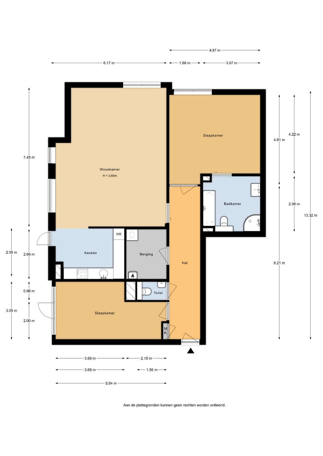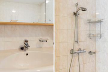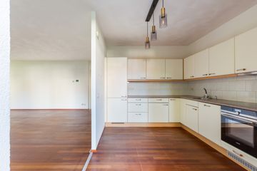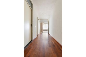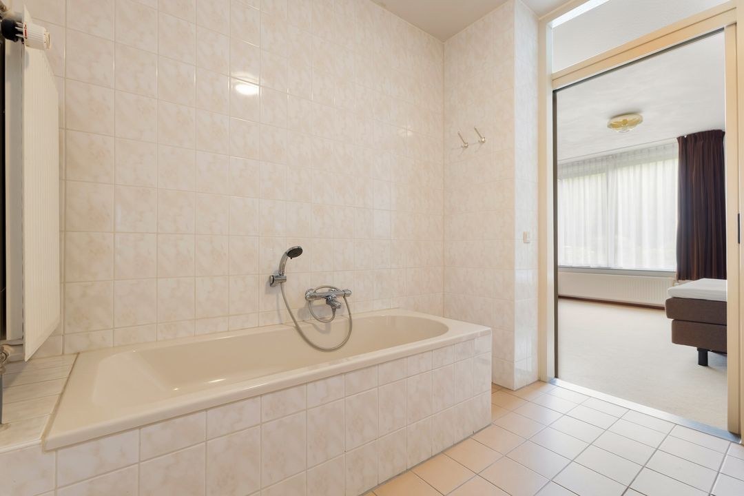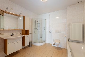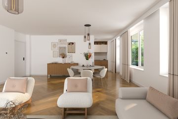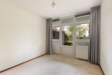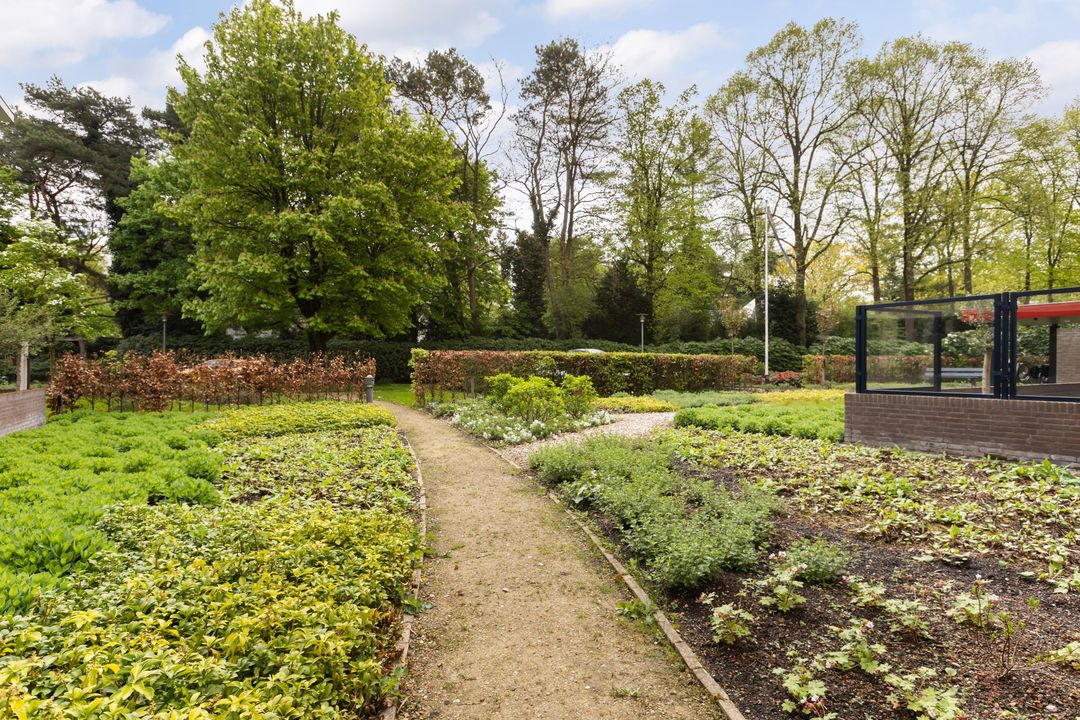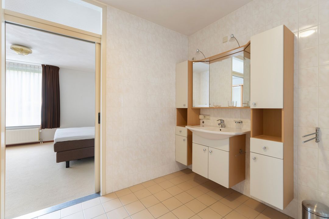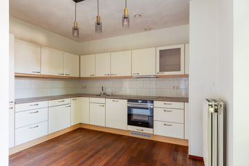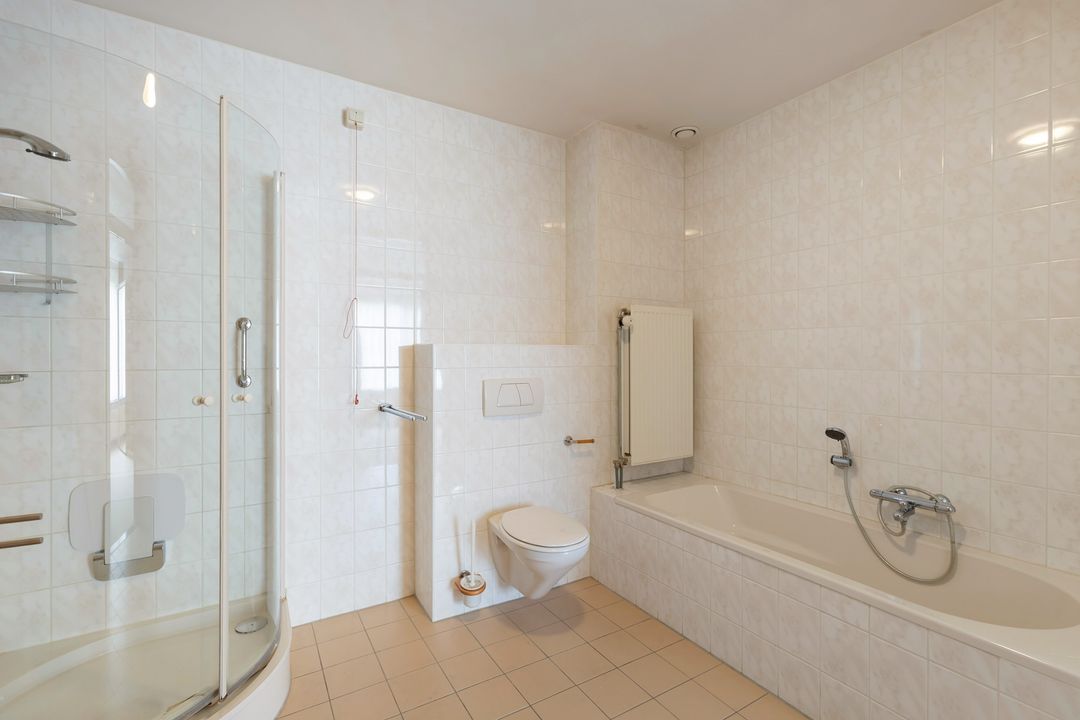 Entree appartement. Ruime hal waarvandaan alle vertrekken te bereiken zijn. Dit zijn de meterkast, het ruime toilet met fontein, de bijkeuken met aansluitingen was- en droogmachine, c.v. gasketel en bergplanken en de woonkamer. De ruime woonkamer (46 m2) v.v. een prachtige parketvloer, heeft veel ramen waarvandaan uitzicht over het park is. Met name het grote raam aan de oostkant geeft uitzicht over de magnifieke tuin. Vanuit de woonkamer is de halfopen keuken te bereiken. De keuken is voorzien van inbouwapparatuur. Vanuit de keuken is het zeer riante terras te bereiken. Voor degene die op zeer warme en zonnige dagen toch buiten wil zitten is dit terras ideaal omdat er veel schaduw is dankzij de hoge bomen. Er zijn vrijwel geen appartementen die een dergelijke buitenruimte hebben en daarom is dit een uniek pluspunt. Riante ouderslaapkamer (ca. 22 m2) met zijraam waarvandaan er een grandioos uitzicht over het park is. De ruime badkamer is netjes onderhouden, voorzien van ligbad, separate douchegelegenheid, wastafel en radiator. De tweede slaapkamer is aan de andere zijde van het appartement gesitueerd. Dit is een volwaardige slaapkamer / werkkamer.