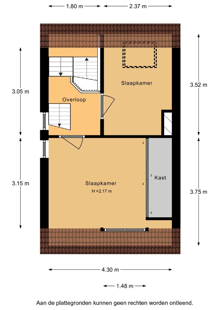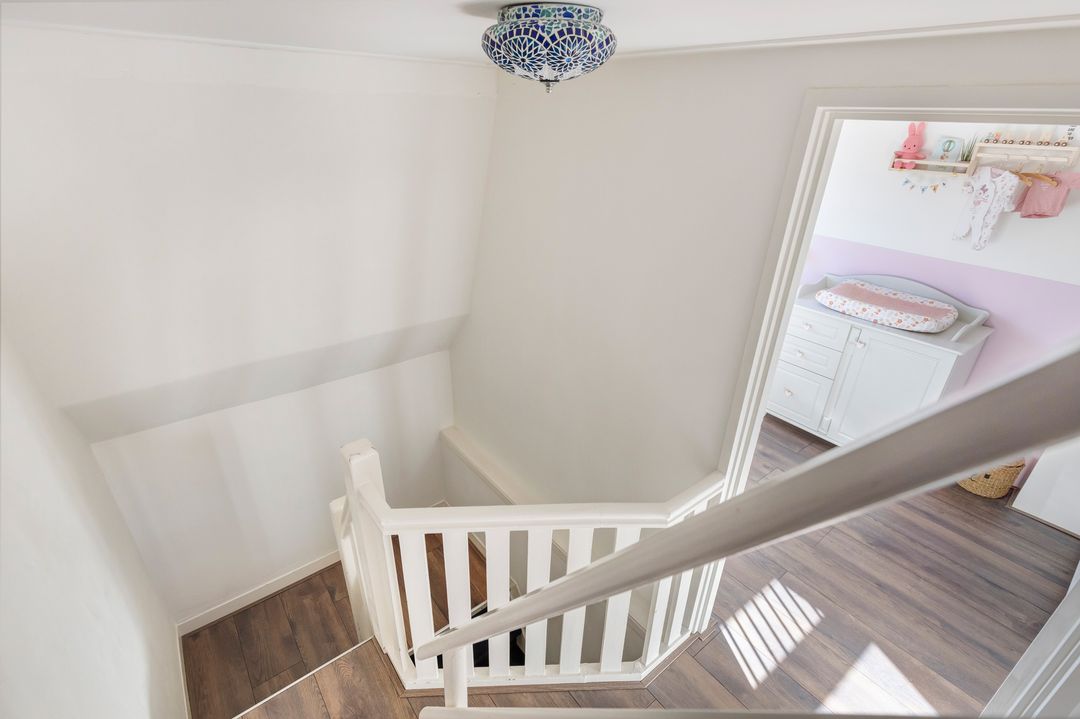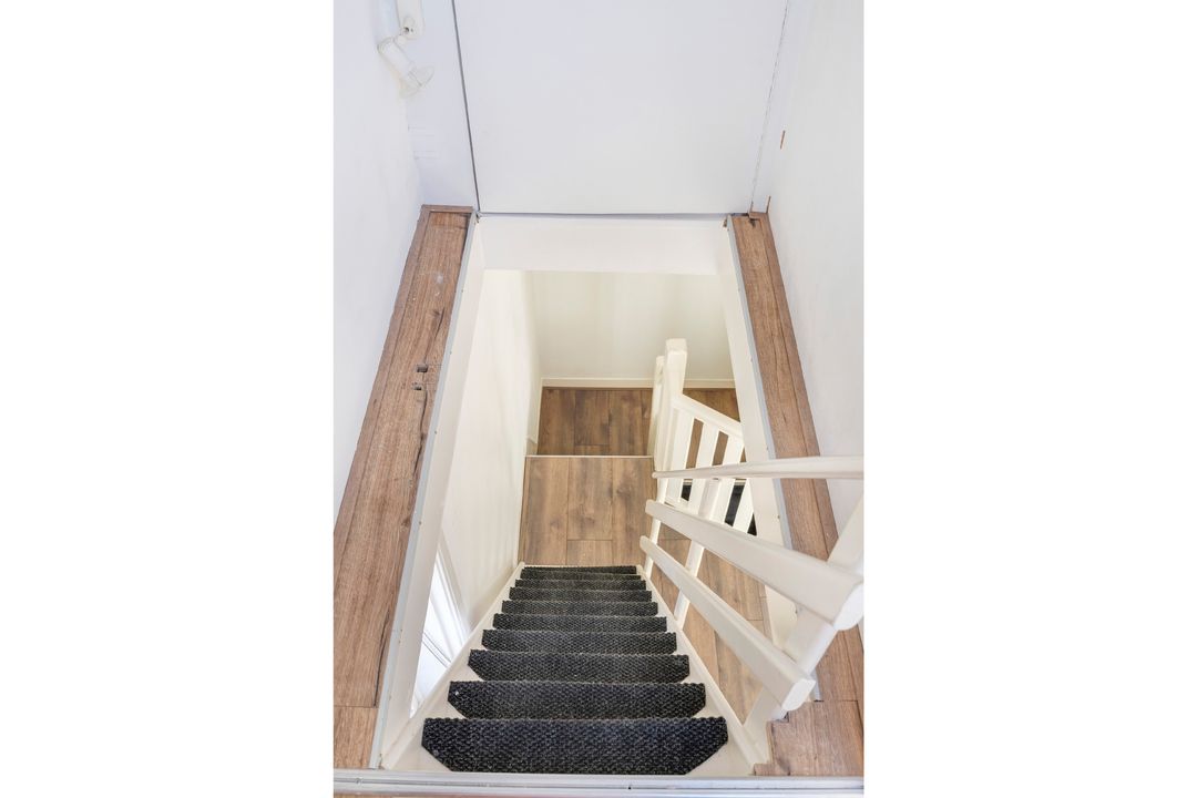1e verdieping: overloop en twee slaapkamers waarvan 1 grote slaapkamer aan de voorzijde van de woning met diepe kast, de tweede slaapkamer bevindt zich aan de achterzijde van de woning.