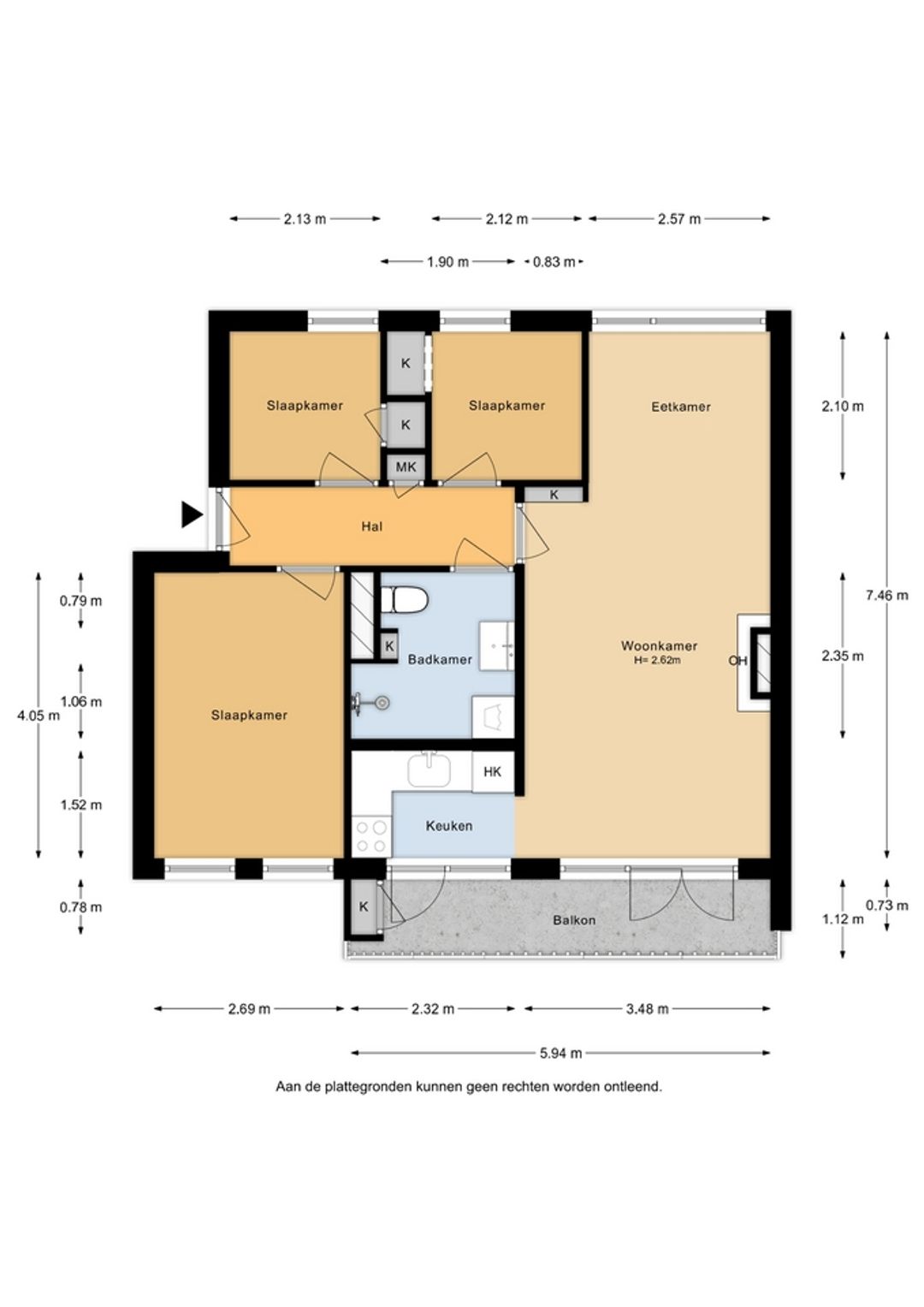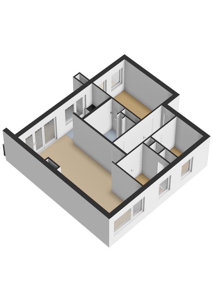 Hal, grote ouderslaapkamer, twee slaapkamers, woonkamer met openslaande deuren naar het balkon, toilet, badkamer met inloopdouche en wasmachineaansluiting en vloerverwarming, keuken met een zeer slimme indeling. In de onderbouw bevindt zicht nog een privé berging van 10m2 en een gemeenschappelijke fietsenberging.