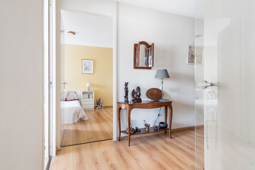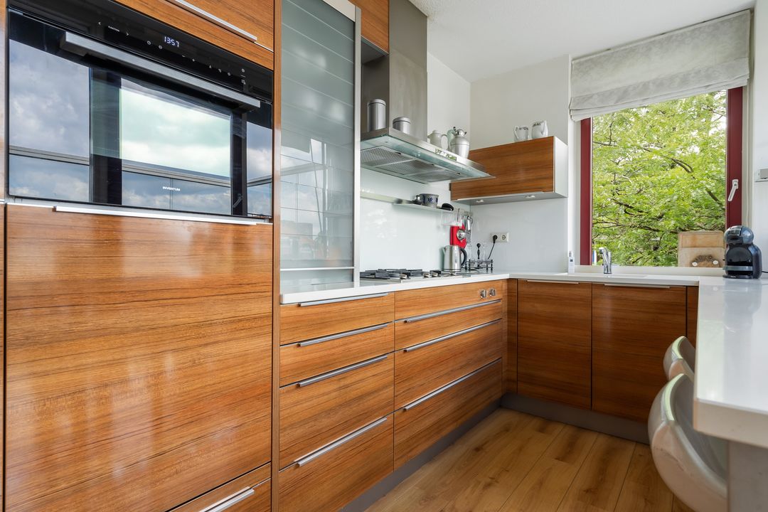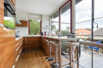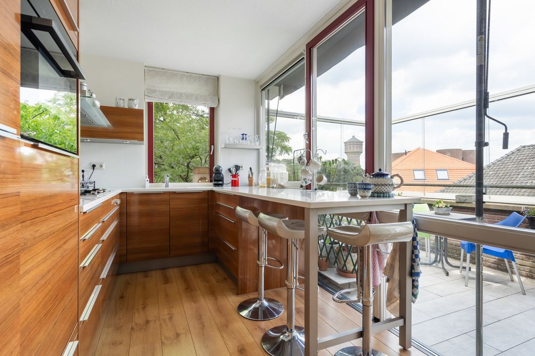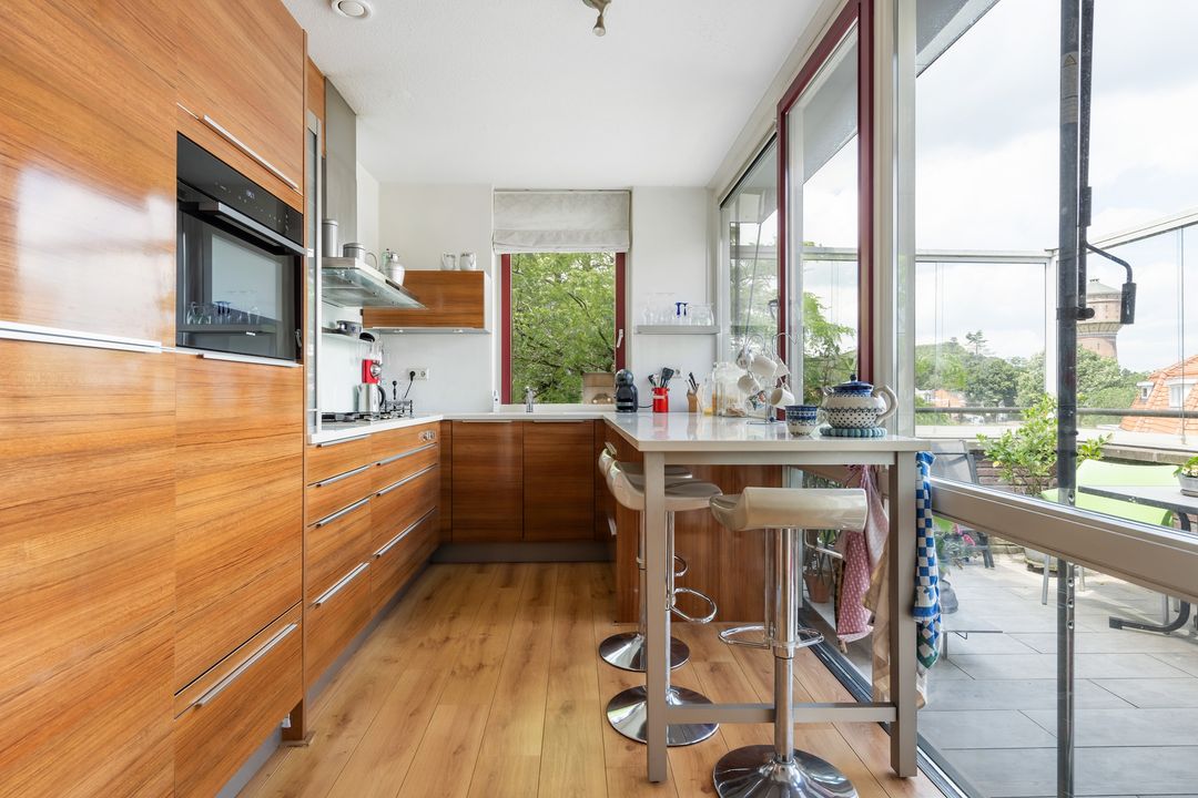 Hoewel het op de tweede verdieping, de bovenste etage, is gelegen, laat het hoekappartement met groot hoekbalkon opvallend veel licht binnen. Op het platte dak van het appartementencomplex mogen de eigenaren eigen zonnepanelen installeren. Deze eigenaar heeft in 2023 acht panelen neer laten leggen met een wattage van 410 Watt, waardoor dit appartement energieneutraal is.