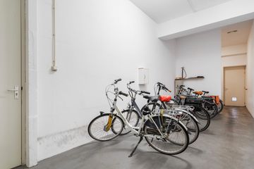 Dit gebouw heeft een gemeenschappelijke fietsenberging. Met eigen toegangsdeur vanuit de Jagerlaan. Zo blijft de centrale hal tenminste schoon. Gezien de locatie van de meterkast is het gemakkelijk om een fietsaccu bij- of op te laden. Vanuit de fietsenberging kunt u doorlopen die toegang geeft tot de garagebox.