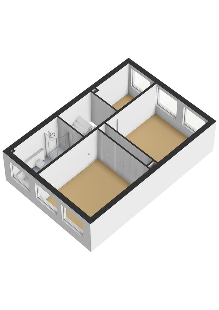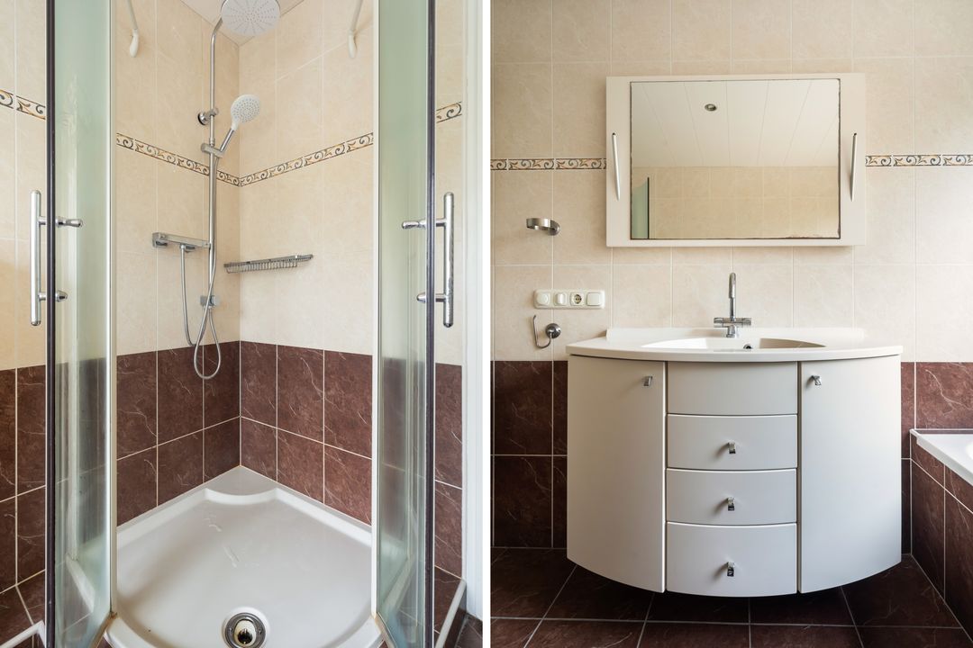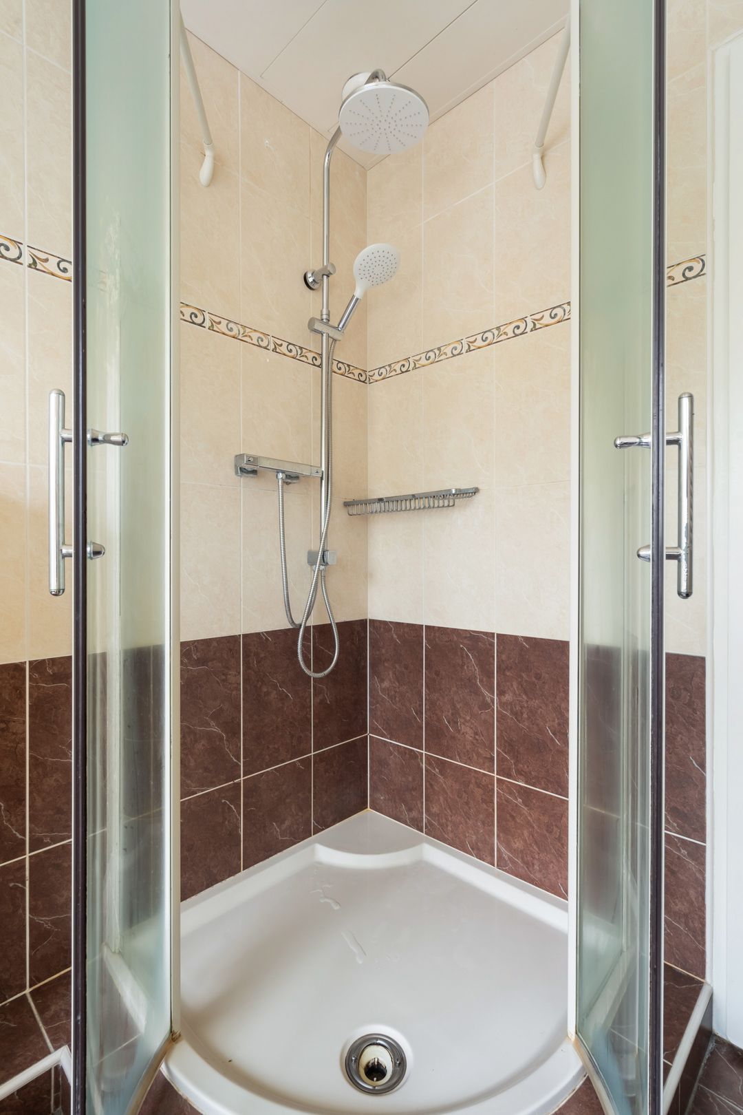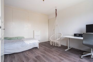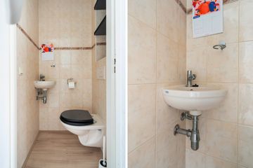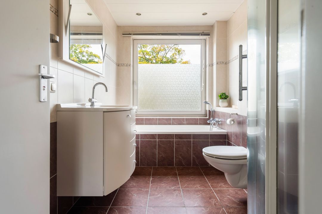 Eerste verdieping: 3 slaapkamers en 1 badkamer De overloop op de eerste verdieping geeft toegang tot de drie slaapkamers en de badkamer. De badkamer aan de voorzijde beschikt over een ligbad, douche, wandcloset en wastafelmeubel. De kamers op deze verdieping hebben een nette laminaat vloer. De grote ramen zorgen voor veel licht op deze verdieping.