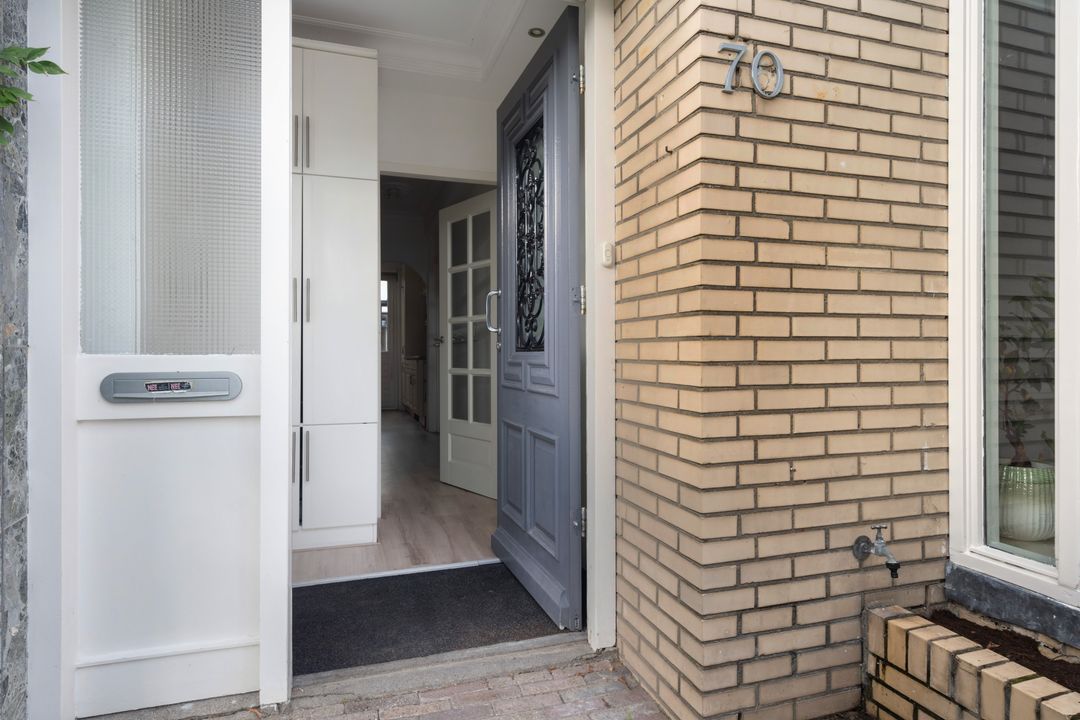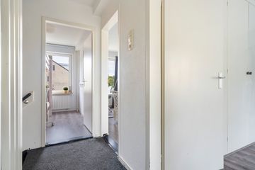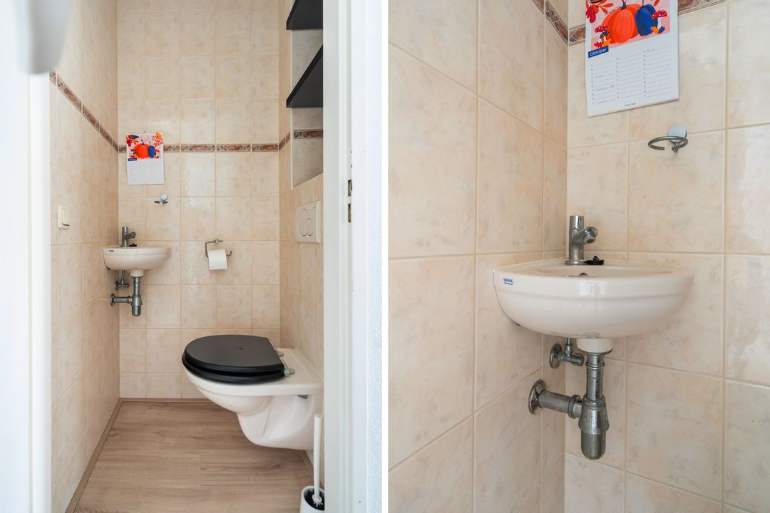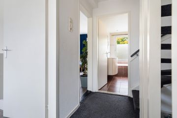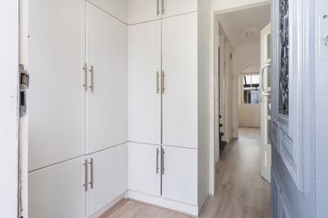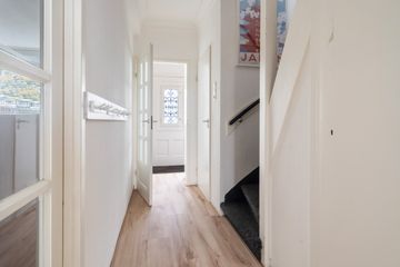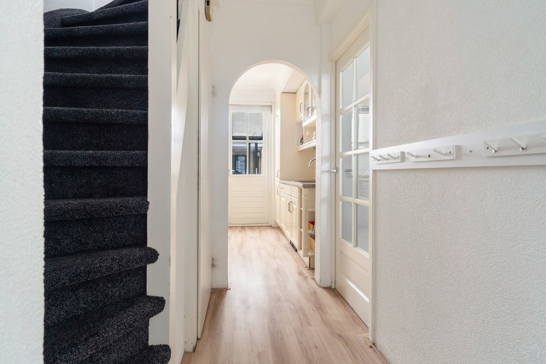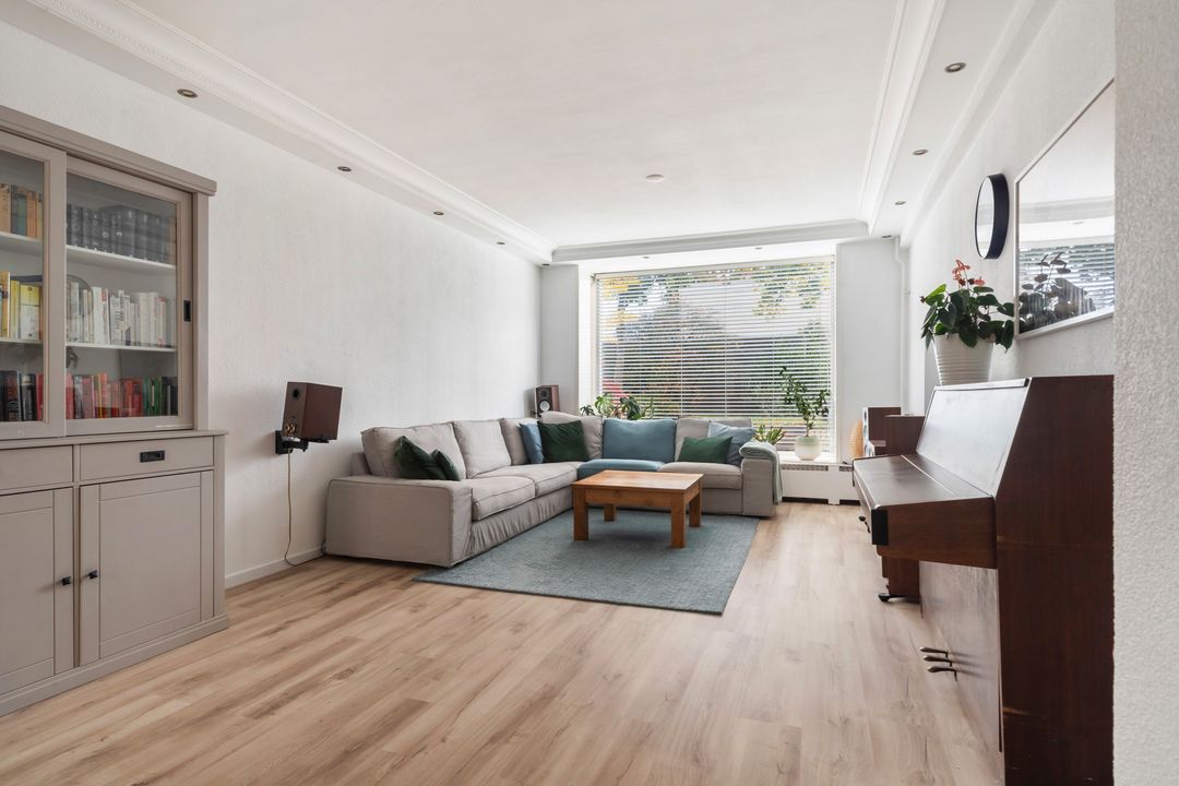 Begane grond: entree met vestibule; hier zijn handige op maat gemaakte kasten voor de jassen en schoenen. De vestibule geeft toegang tot de gang met de toiletruimte, een trapkast en de trapopgang naar de verdieping. Woonkamer en keuken De heerlijk royale woonkamer heeft een erker aan de voorzijde die zorgt voor een goede lichtinval.