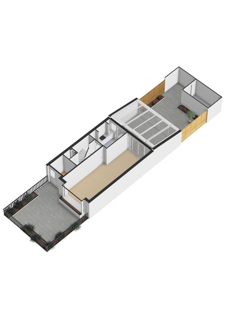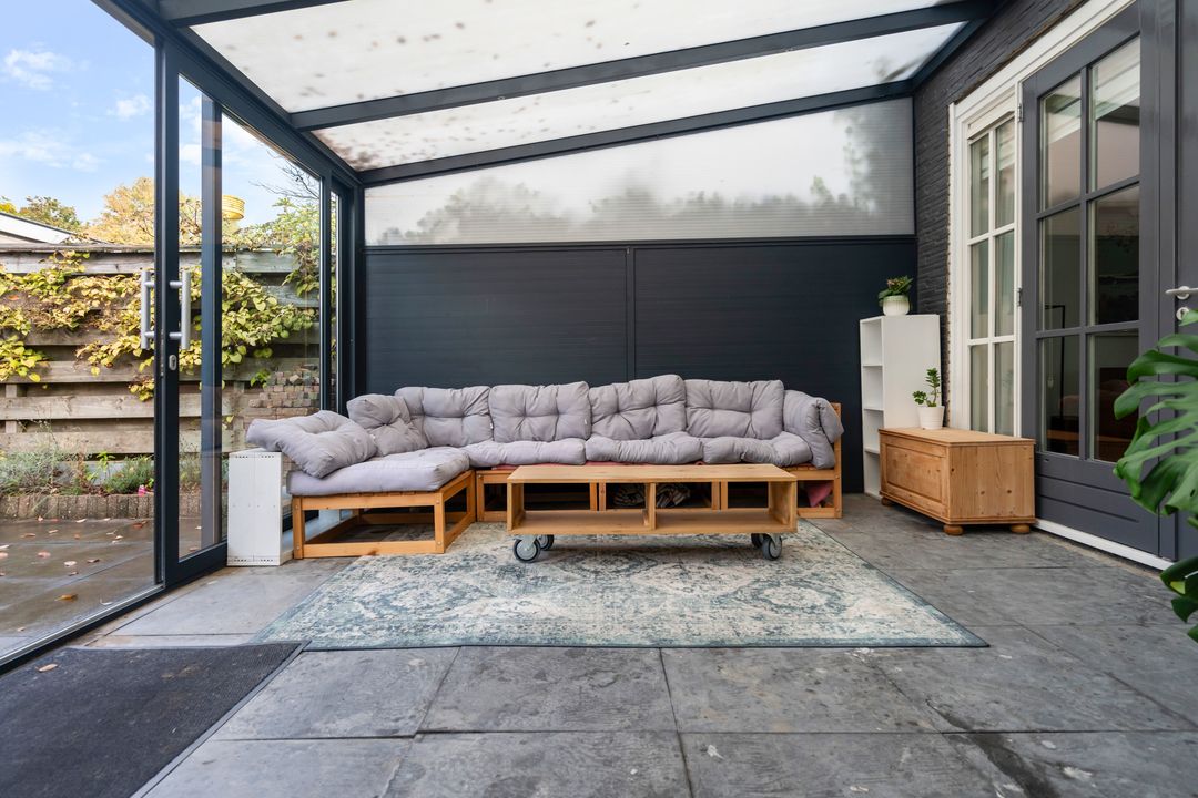 Tuin: In de achtertuin is een aluminium serre geplaatst, welke zowel vanuit de woonkamer als de keuken bereikbaar is.