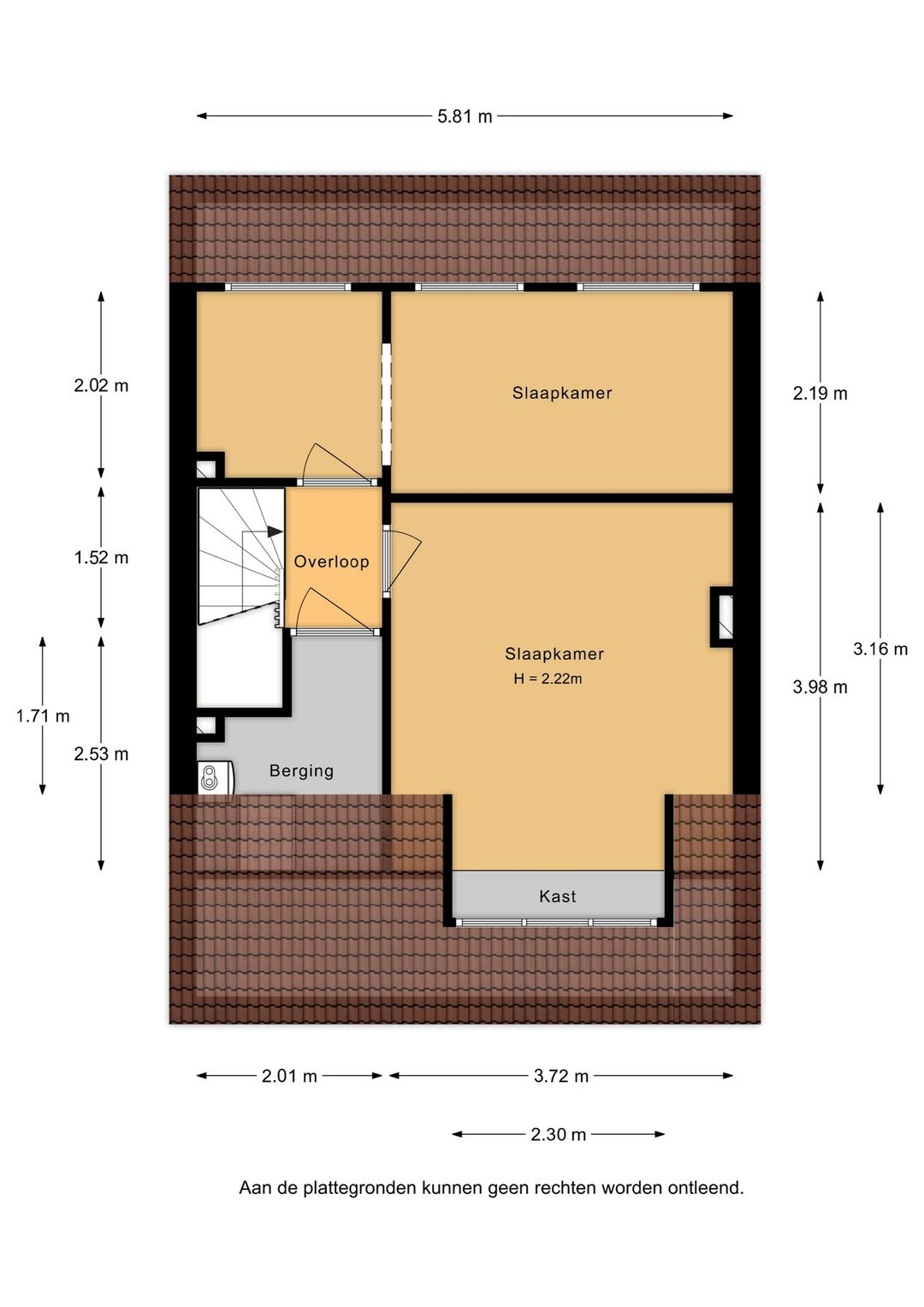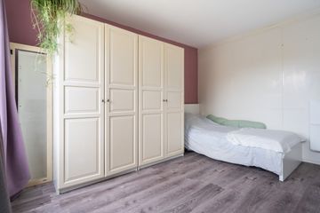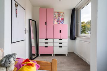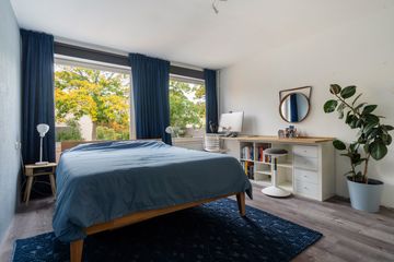Tweede verdieping: 2 slaapkamers De overloop op de tweede verdieping geeft toegang tot een wasruimte met de cv-gasopstelling. Deze verdieping is handig ingedeeld met twee ruime slaapkamers. De kamer aan de achterzijde heeft een dakkapel over de volle breedte en de kamer aan de voorzijde heeft ook een grote dakkapel, waardoor ook deze verdieping een bijzonder prettige lichtinval heeft. Aan de achterzijde is bovendien een rolluik, hetgeen een uitstekende zonwering is.