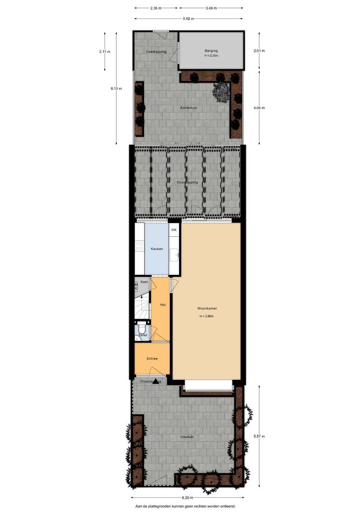 Bijgebouw: Achterin de tuin bevindt zich een stenen berging met elektriciteit en een poort naar de achtersteeg.
