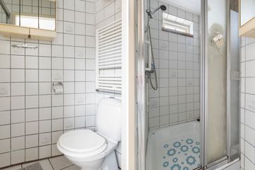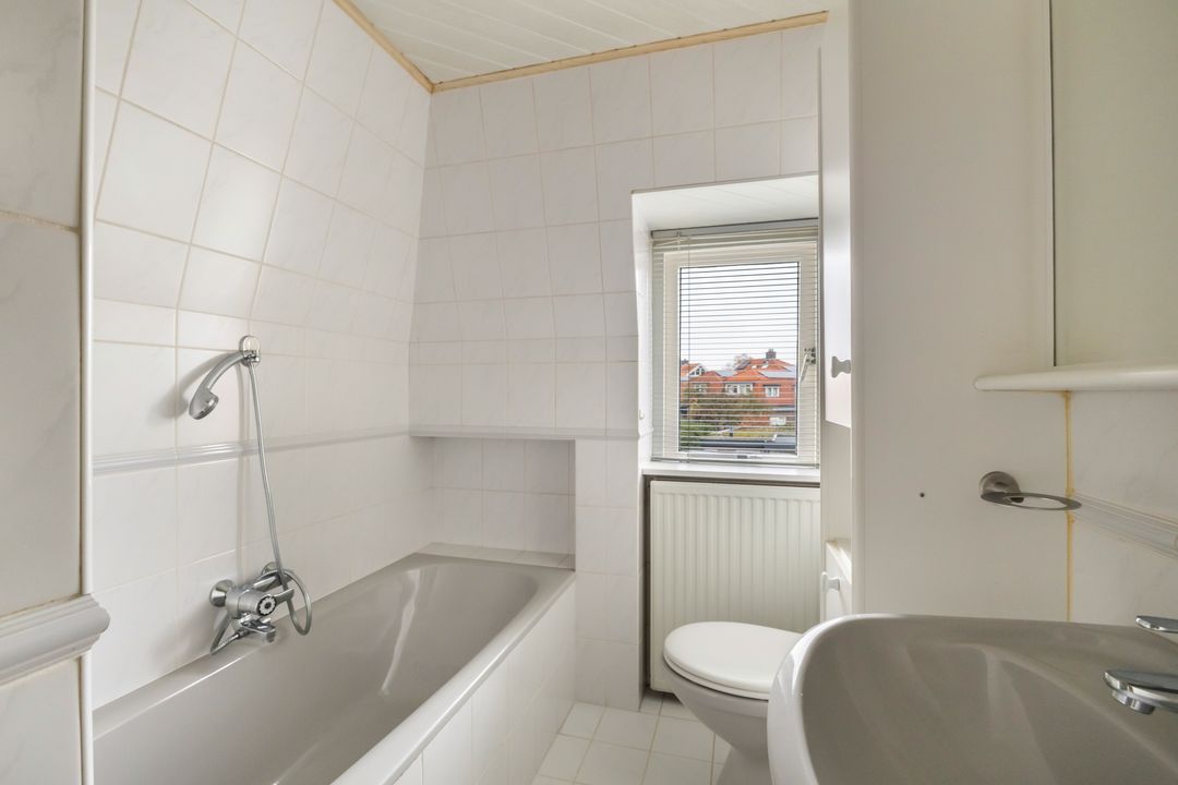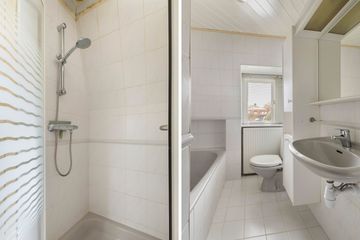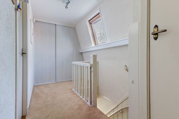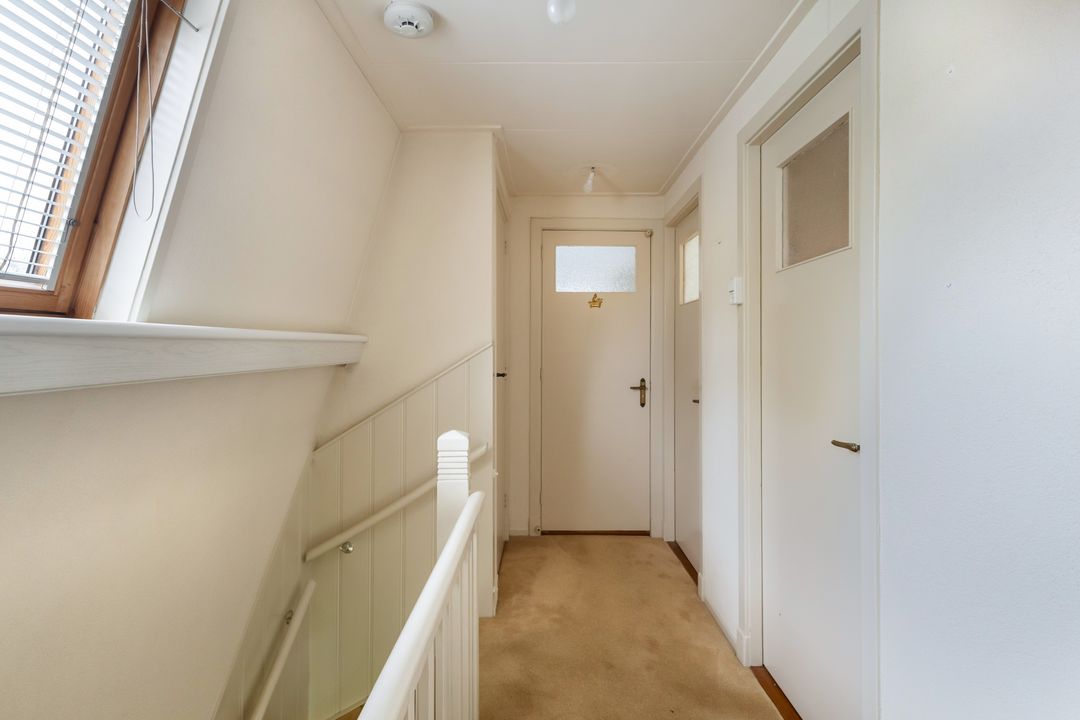 overloop met kastruimte, badkamer v.v. bad, douche, toilet en wastafel, twee ruime slaapkamers.