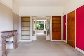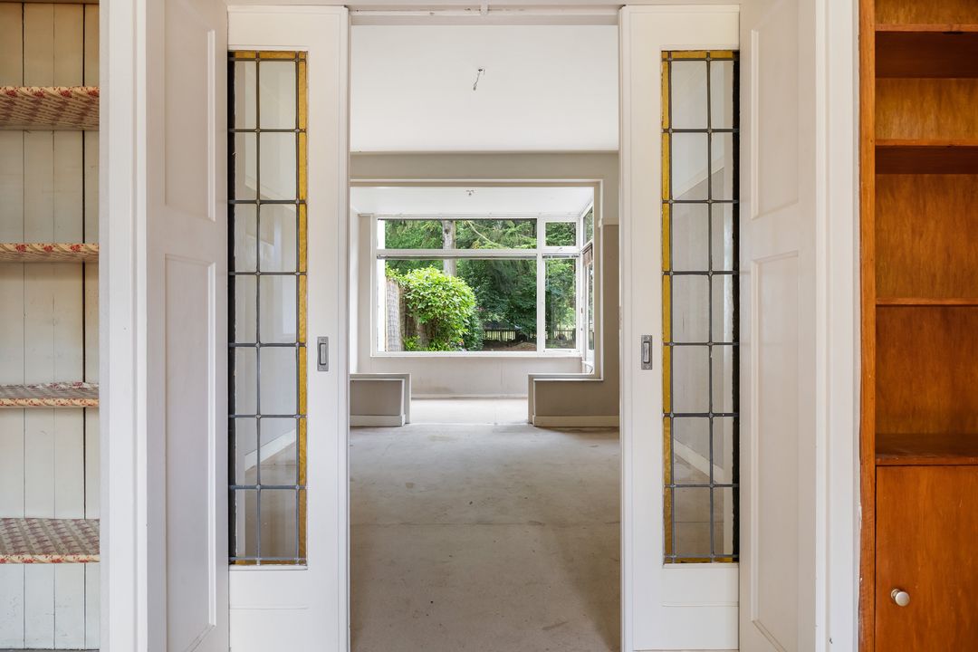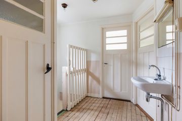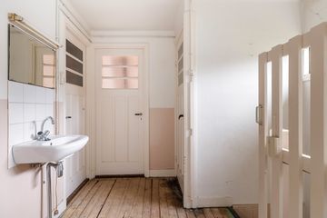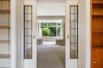 Begane grond: entree met hal, voorraadkast en toilet. Via de centrale hal loopt u de woonkamer binnen. De woonkamer is en-suite gesitueerd met originele schuifdeuren, ingezet met glas in lood. Op het oog vallen twee prachtige originele schouwen op, waar voorheen gaskachels hebben gestaan. De woonkamer is verder voorzien van een lichte serre met deur naar de tuin. De keuken is bereikbaar vanuit de hal en achterom vanuit de tuin.