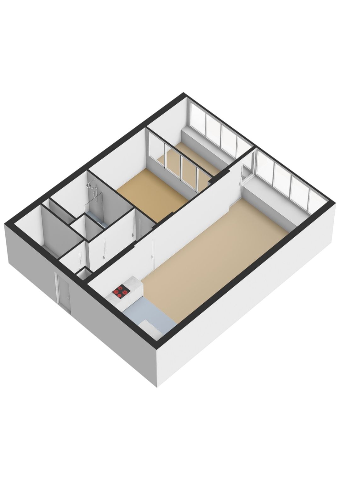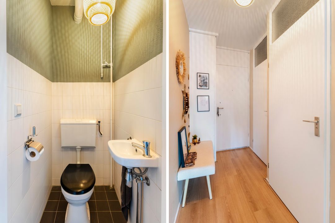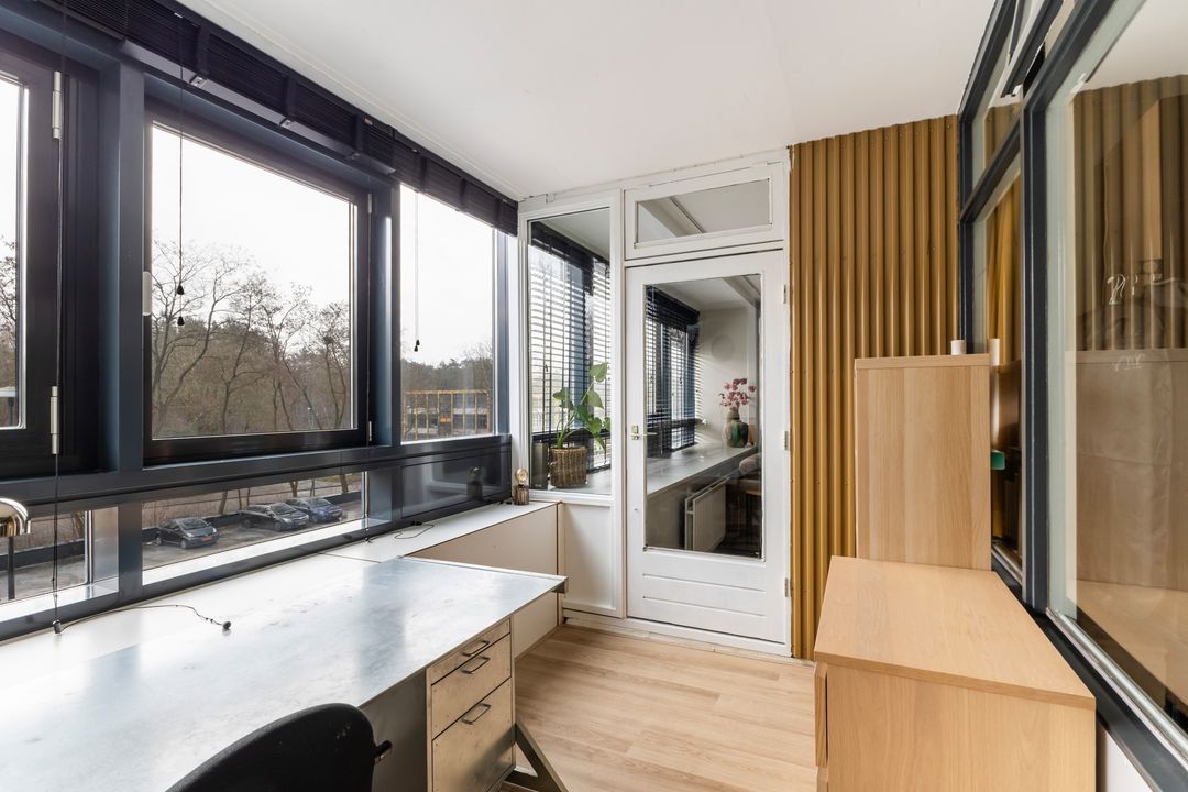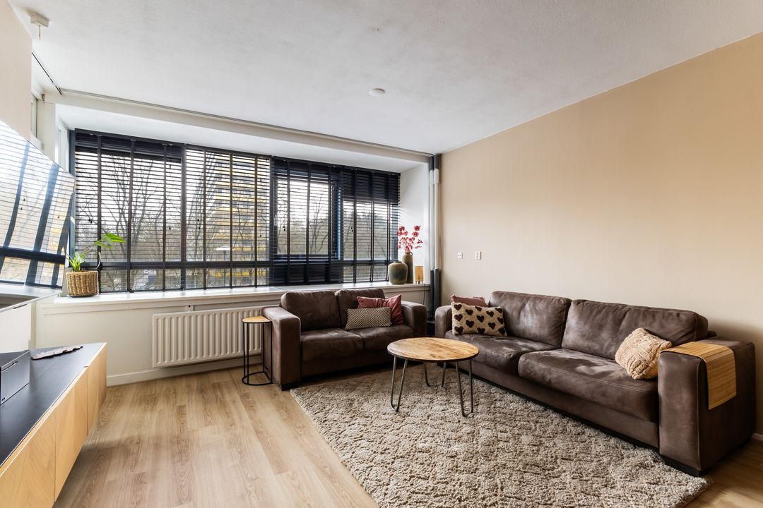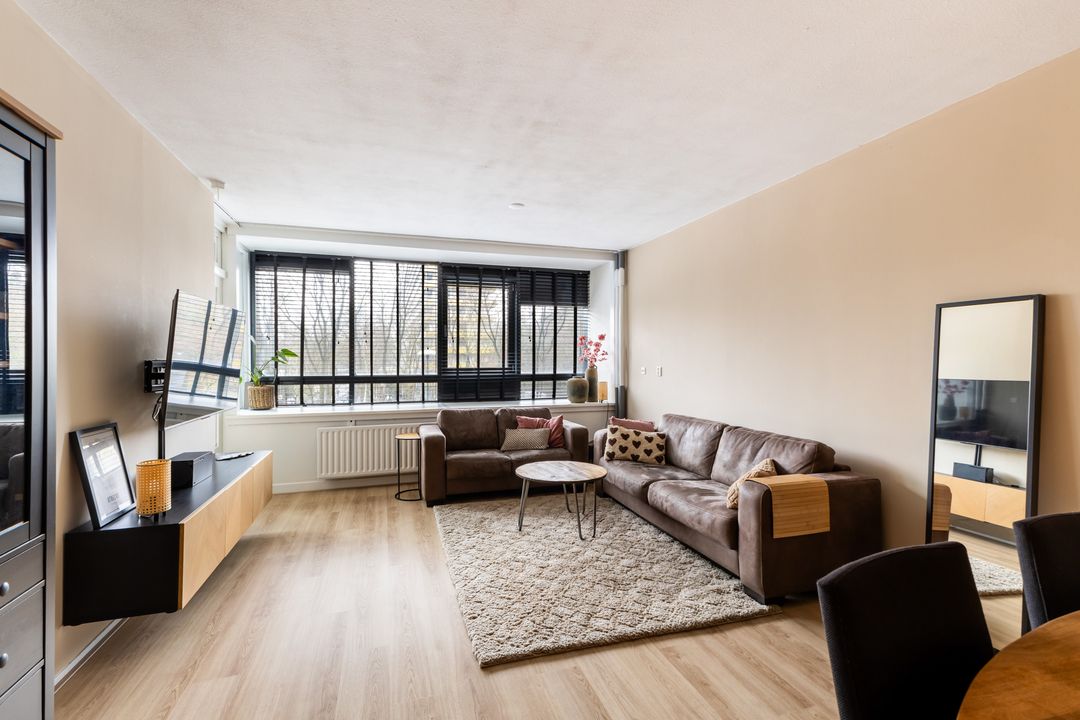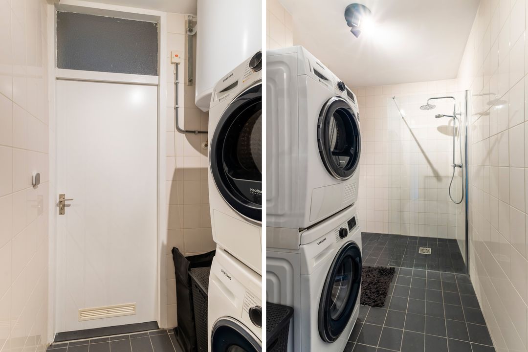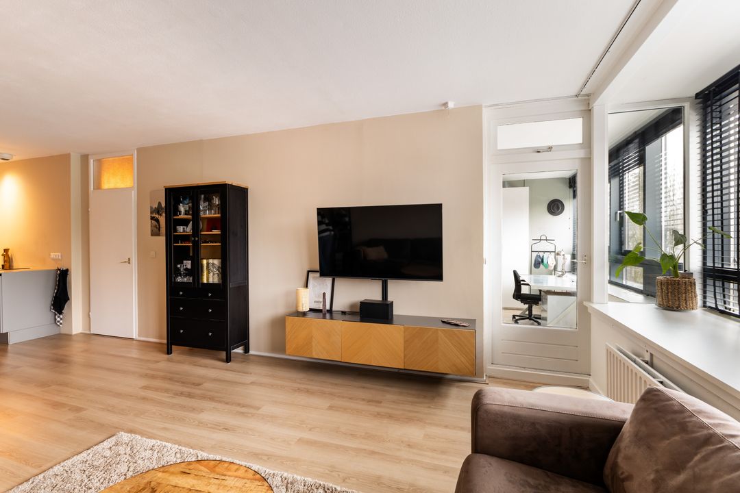 Entree, berging, separaat toilet en toegang tot de woonkamer, badkamer en slaapkamer. In de ruime woonkamer (ca. 40m2) is de open keuken. De keuken heeft een L- vormige opstelling en is in november 2023 vernieuwd. Tevens is de keuken voorzien van een Bora inductie vierpits kookplaat met afzuiging, Aqua hot water(kook)kraan, vaatwasser en combi oven. Vanuit de woonkamer is de loggia te bereiken welke is ingericht als werkkamer. Een fijne slaapkamer en badkamer welke is gerenoveerd waarbij alle aansluitingen in de muur zijn weggewerkt en in 2023 voorzien van nieuw badkamermeubilair, inloop douche en mengkraan met regendouche.