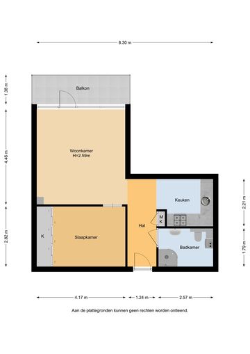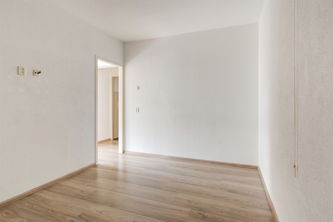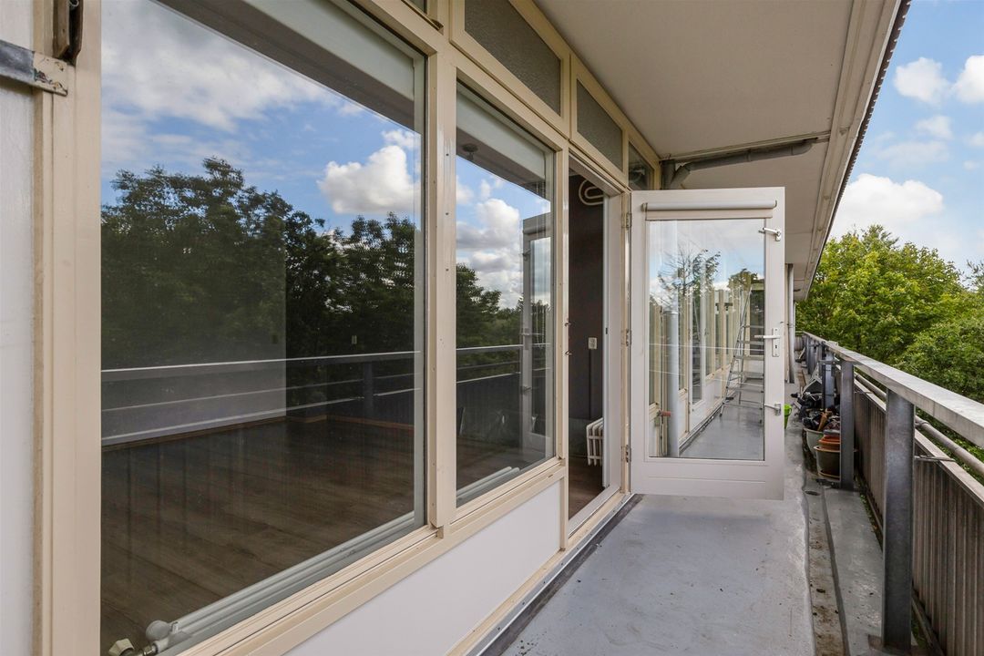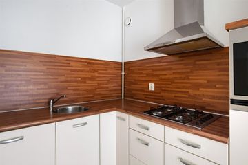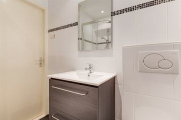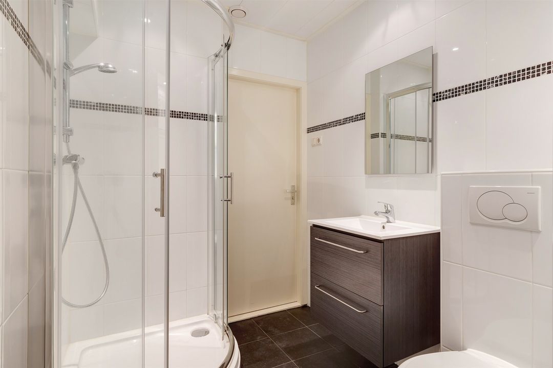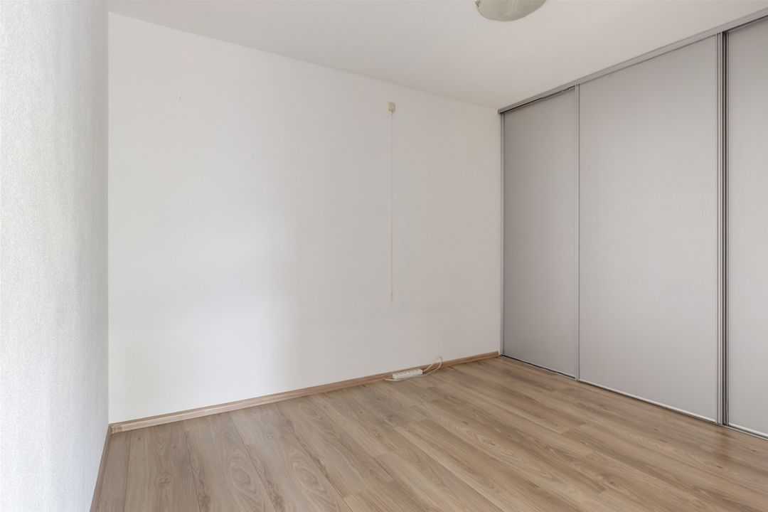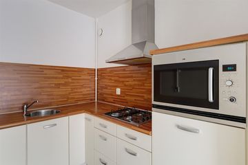 Entree/hal met meterkast en intercom, direct rechts toegang tot de gemoderniseerde badkamer met toilet, wastafel, aansluitpunten voor uw witgoed en een aparte douche. Een nette keuken, een grote en lichte woonkamer met een laminaatvloer, welke toegang geeft tot het balkon met uitzicht op het groen, er is een aparte slaapruimte gecreëerd v.v. laminaat en kastenwand.