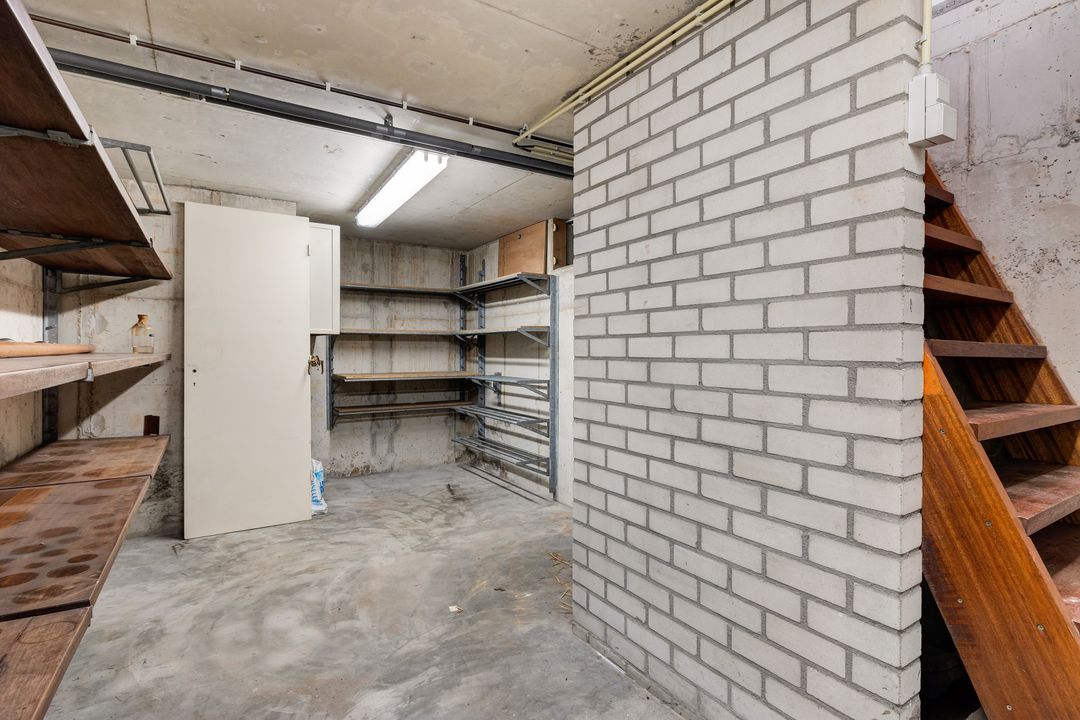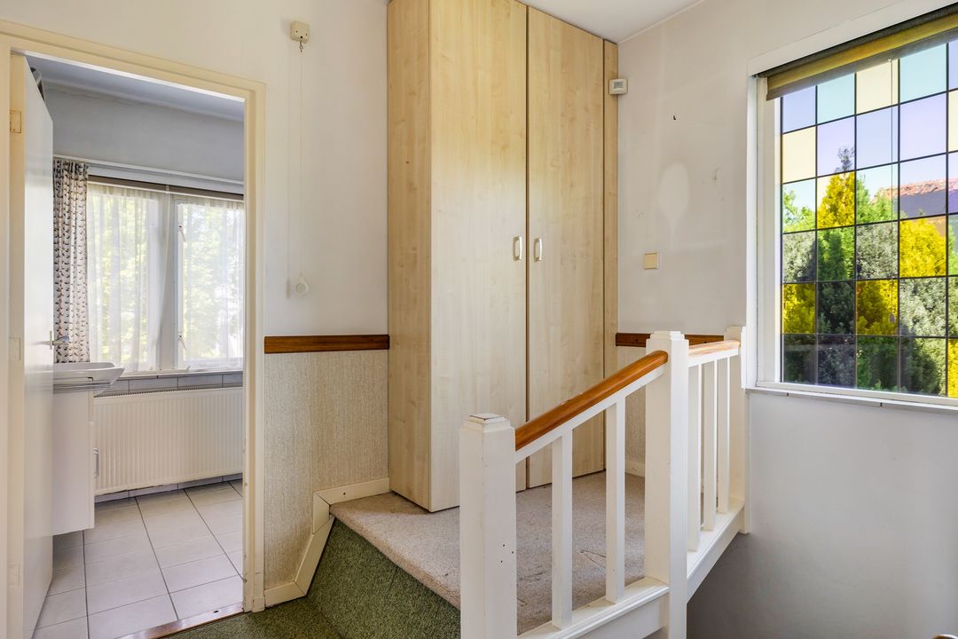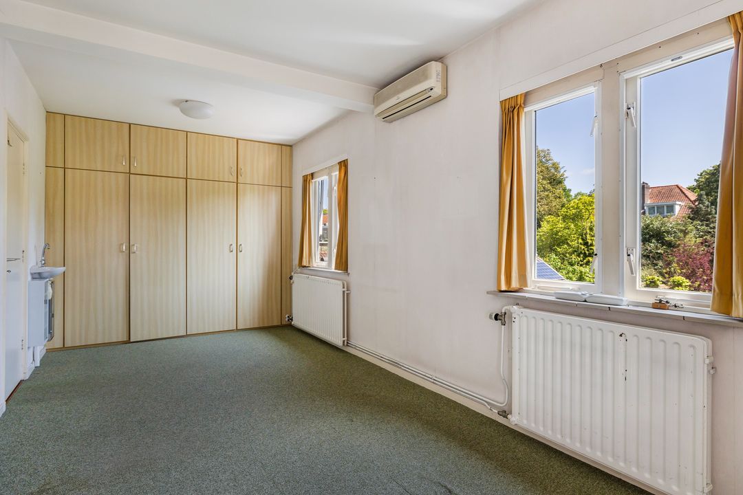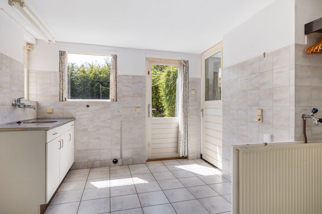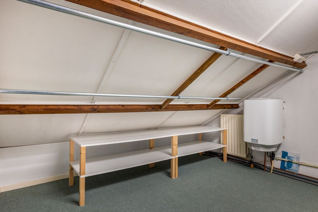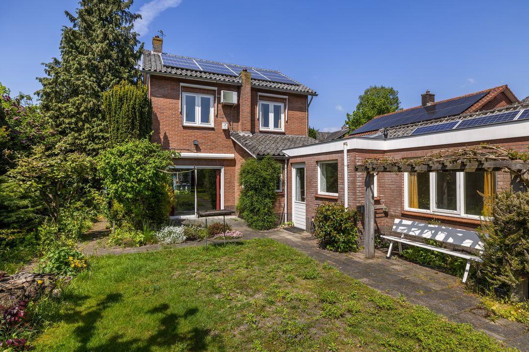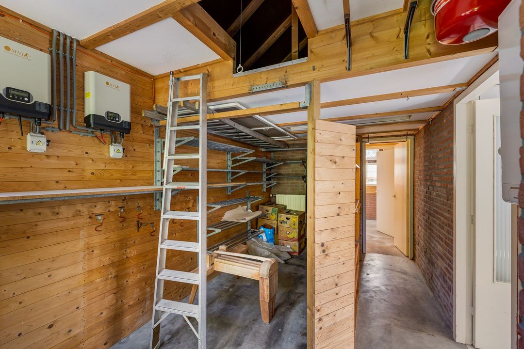 De woning heeft een fijne L – vormige woonkamer met schuifpui aan de tuinzijde, een keuken, bijkeuken, hobbykamer, werkplaats, garage, een plantenkas en ruime kelder. Op de eerste verdieping zijn 2 slaapkamers, voorheen 3, een badkamer met wastafel en douche. Op de 3e verdieping is de zolder.