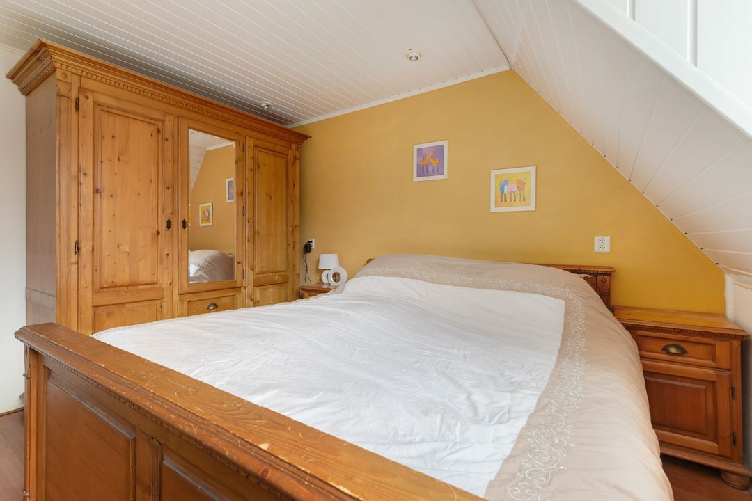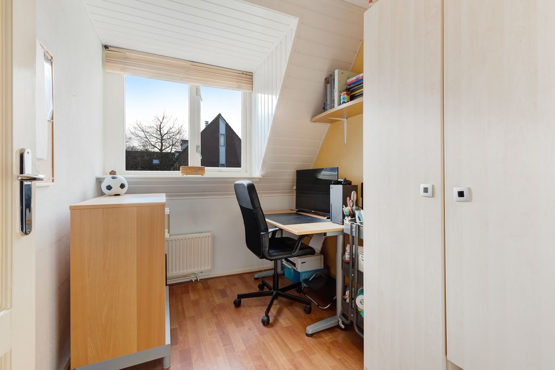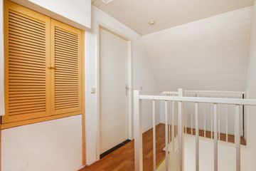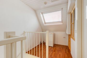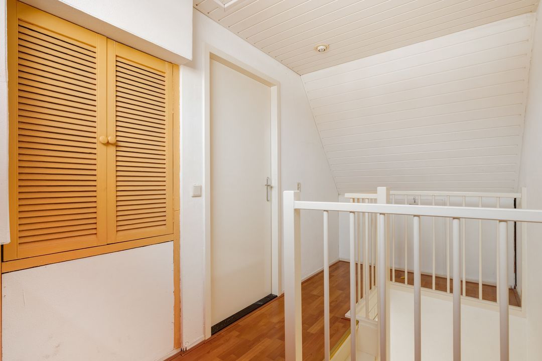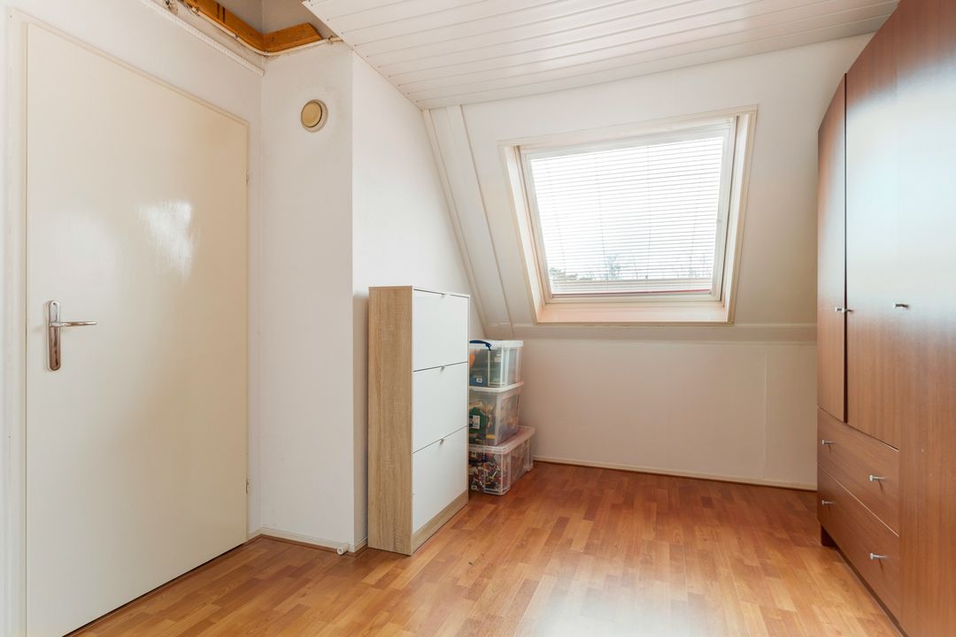 Middels vaste trap te bereiken zolderkamer met velux dakramen, bergruimte achter de knieschotten en toegang tot de bergvliering. Tevens treft u hier de opstelplaats van de cv- combiketel. De ruimte is thans in gebruik als opberg ruimte.