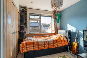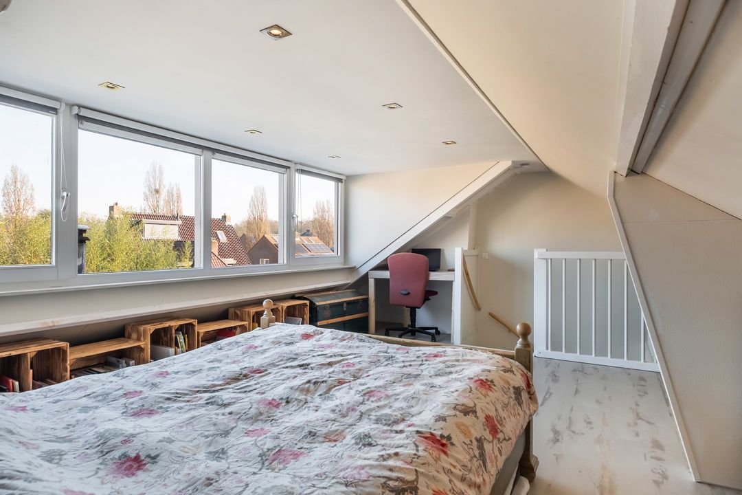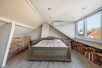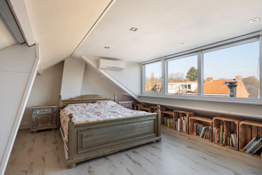 De zolderkamer heeft een dakkapel over de gehele breedte; hiermee is de grootste slaapkamer gecreëerd en met een vergezicht over de prachtige monumentale bomen van de Heuvelrug is dit een lust voor het oog!