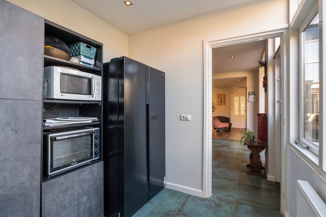 Entree, gang, toilet, royaal uitgebouwde lichte woonkamer met authentieke houtkachel, trapkast, computerhoek, open keuken van massief eikenhout voorzien van inbouwvaatwasser, inductiekookplaat met afzuigkap. Via de keuken loopt u door naar de bijkeuken met een grote losstaande koel-vriescombinatie met daarnaast nog genoeg bergruimte. Vanuit de bijkeuken is de achtertuin bereikbaar. Via de bijkeuken is er toegang tot de schuur / hobbyruimte waar zich de wasmachine- en drogeropstelling bevindt, zo ook een wastafel en voldoende elektra, met een deur naar de achtertuin. Deze ruimte is ook geschikt voor kantoor aan huis.