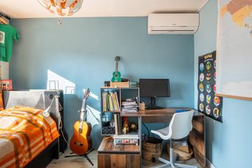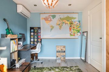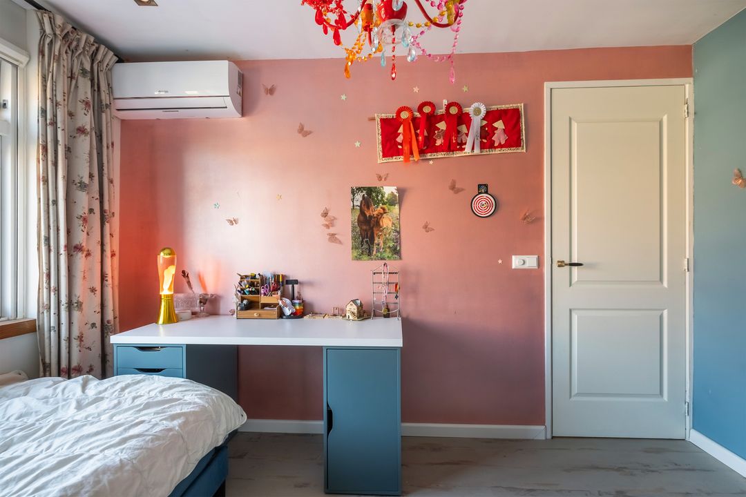 Overloop, slaapkamer aan de voorzijde met twee inbouwkasten en twee slaapkamers aan de achterzijde. Alle kamers zijn voorzien van airconditioning / warmtepomp.