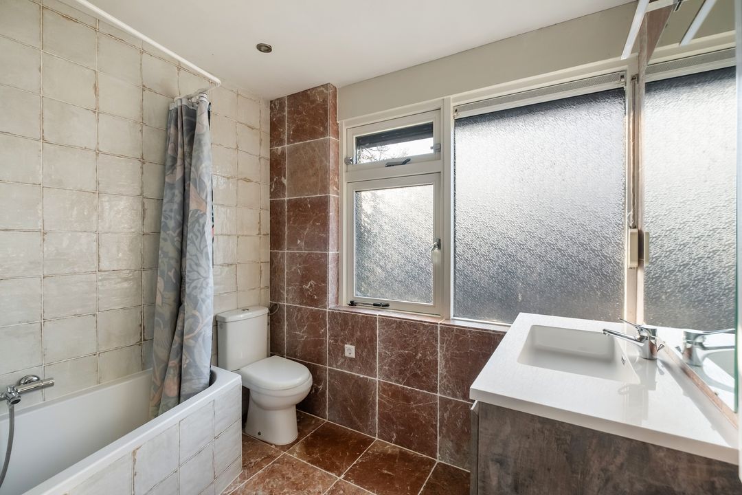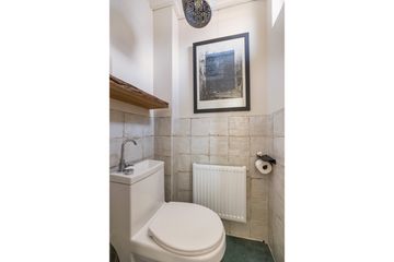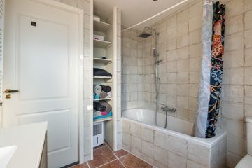 De verdieping biedt drie slaapkamers en een badkamer met ligbad.