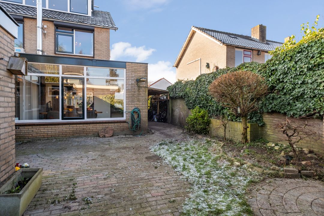 Doordat er geen grote bomen in de omgeving staan heeft u in de achtertuin de gehele dag zon. De schuur / hobbyruimte is bereikbaar vanuit de tuin.