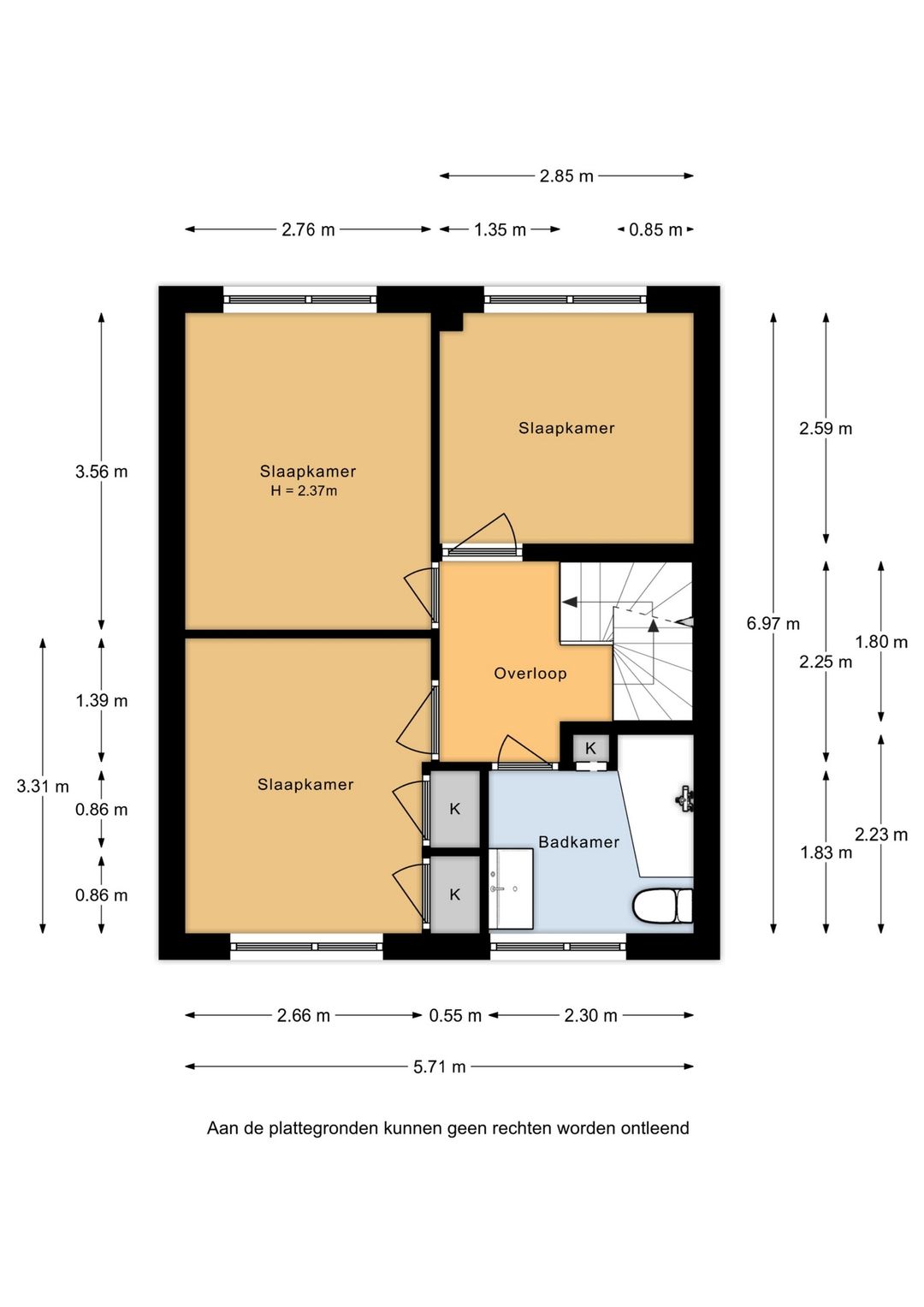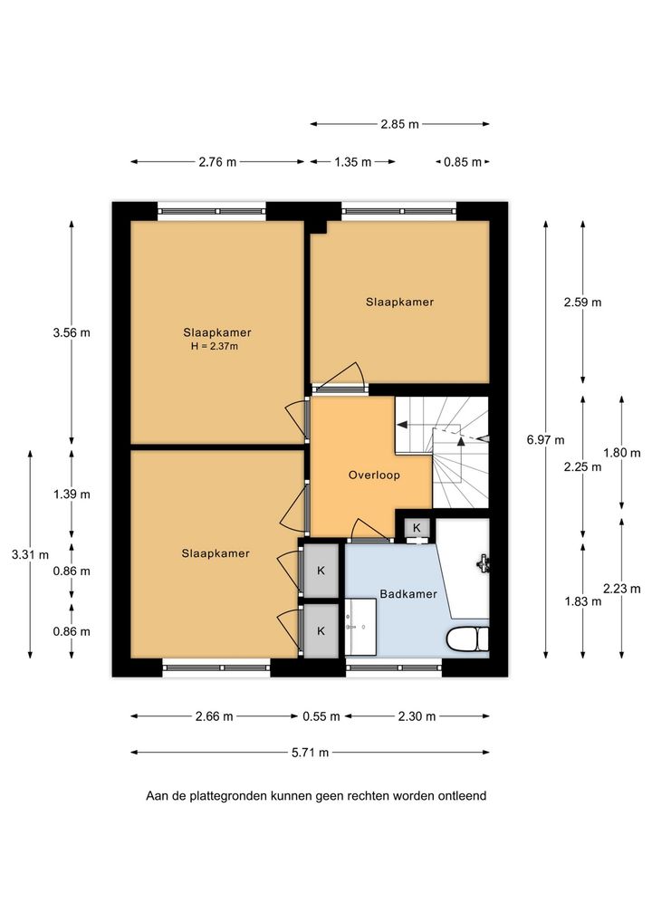 – Volgens NEN 2580 124.3 m2 woonoppervlak en 14,2 m2 inpandige ruimte (2e verdieping), samen 138,5 m2