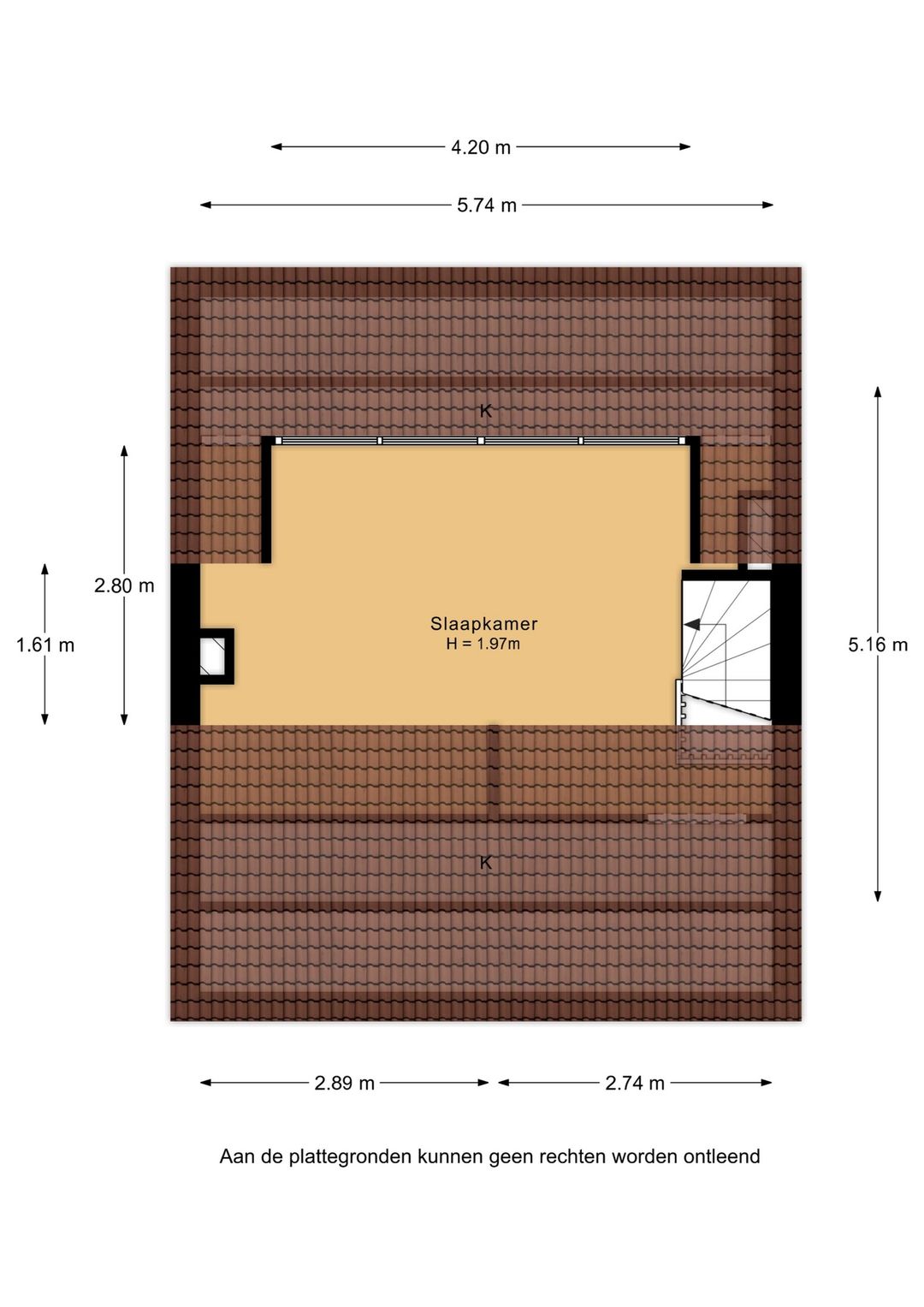 Grote kamer (momenteel in gebruik als slaapkamer) met dakkapel over de gehele breedte van het huis.